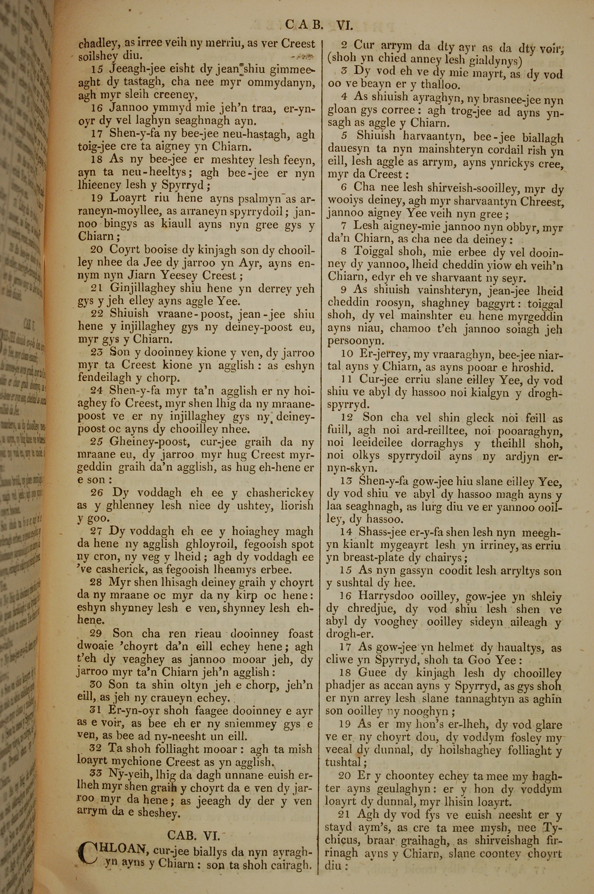 1819年曼島語聖經 以弗所書 5 章 15 節到 6 章 21 節