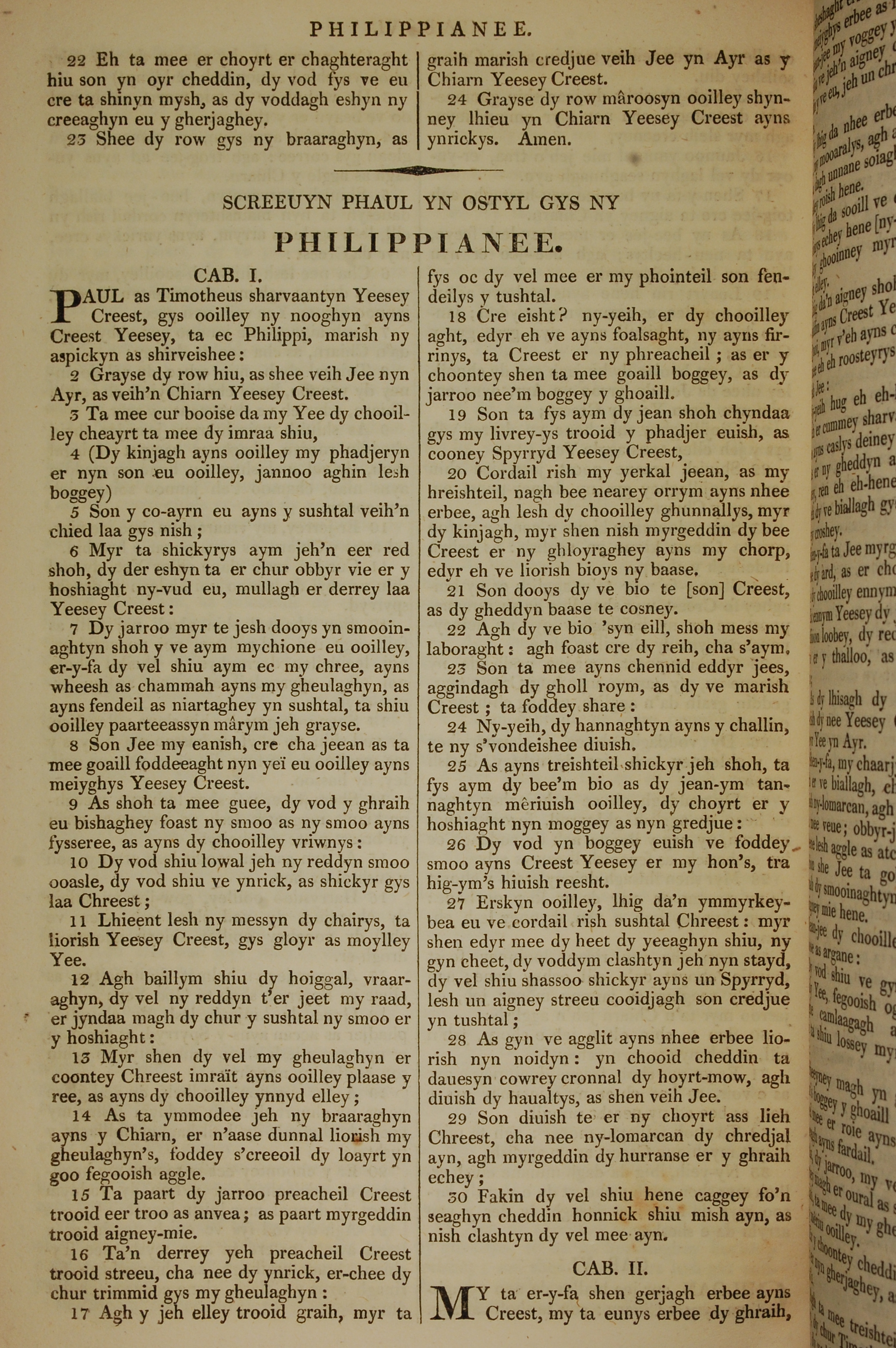 1819年曼島語聖經 腓立比書 1 章 1 節到 2 章 1 節