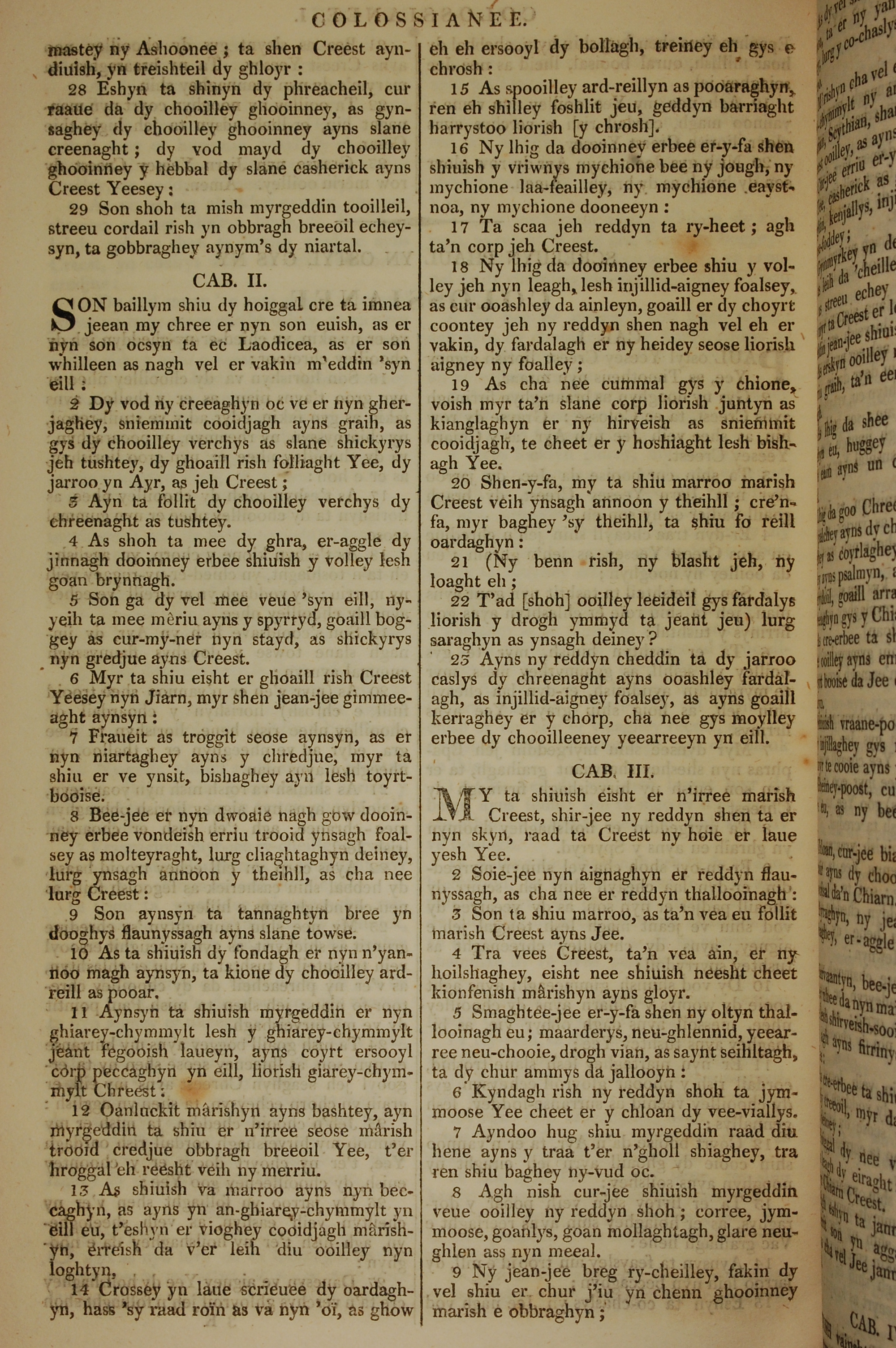 1819年曼島語聖經 歌羅西書 1 章 28 節到 3 章 9 節