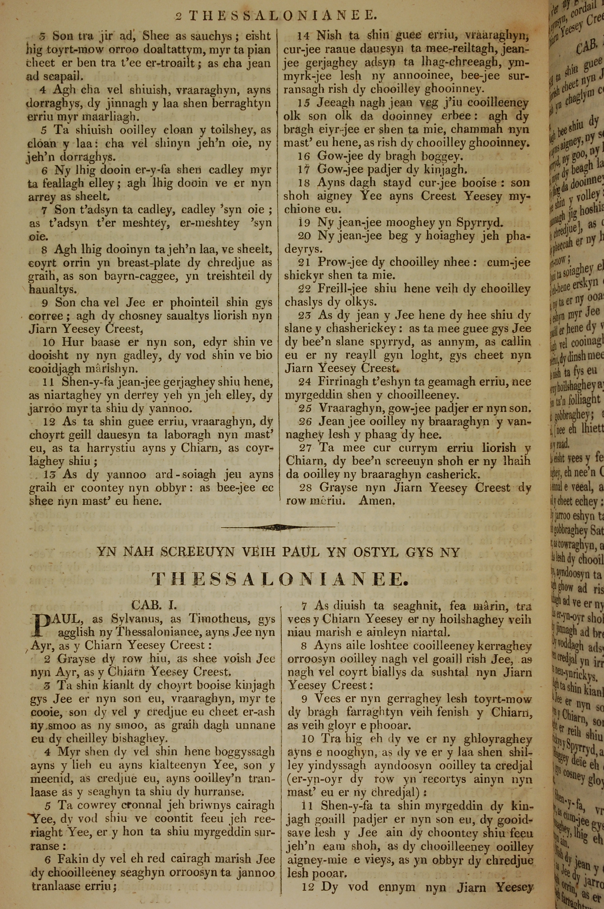 1819年曼島語聖經 帖撒羅尼迦後書 1 章 1 節到 1 章 12 節