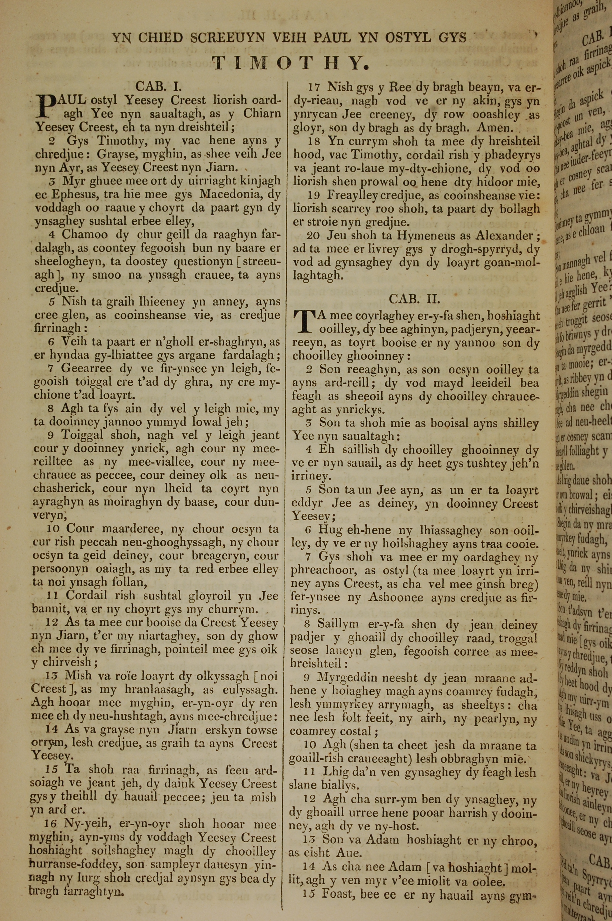 1819年曼島語聖經 提摩太前書 1 章 1 節到 2 章 13 節