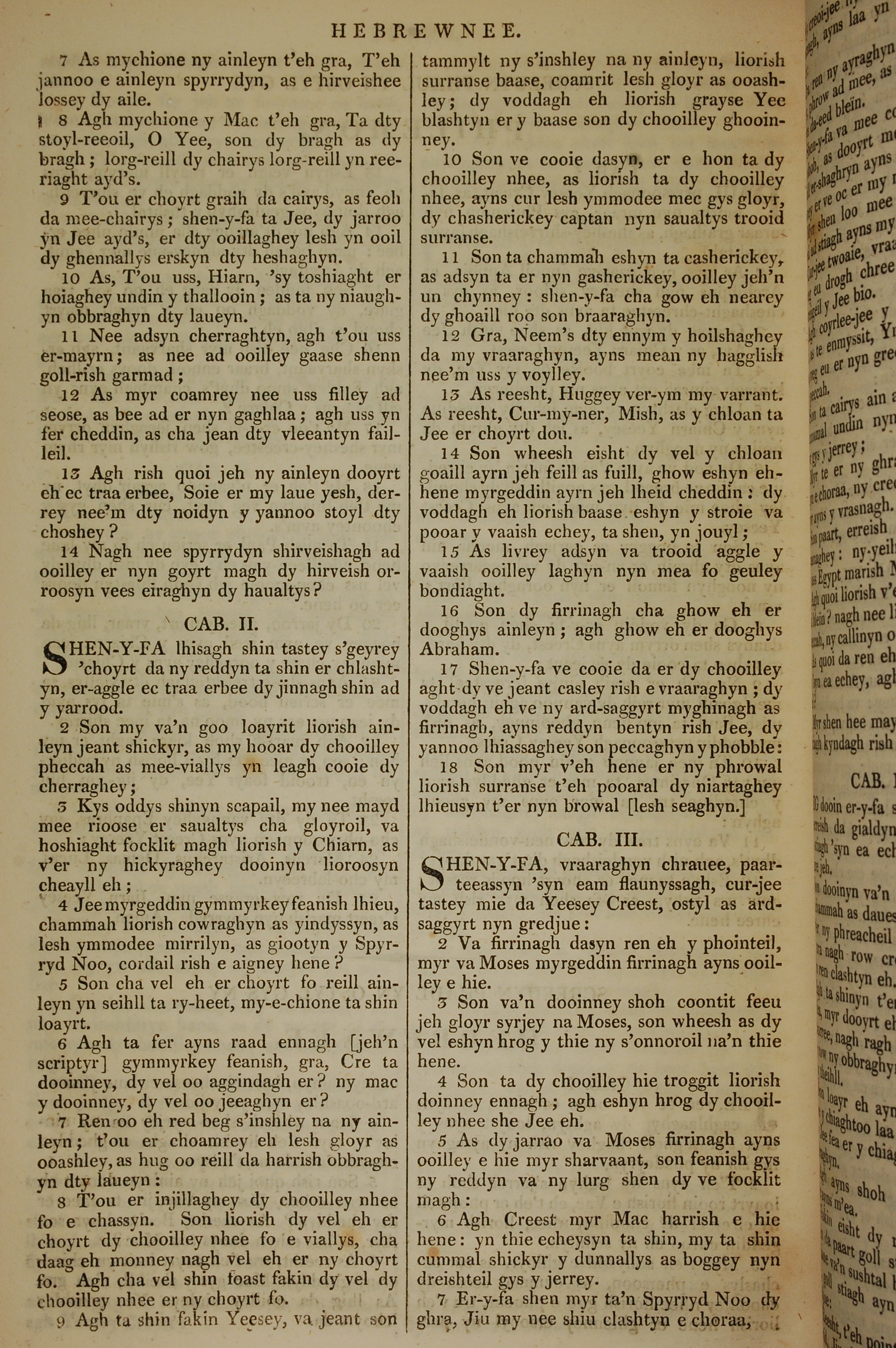 1819年曼島語聖經 希伯來書 1 章 7 節到 3 章 7 節