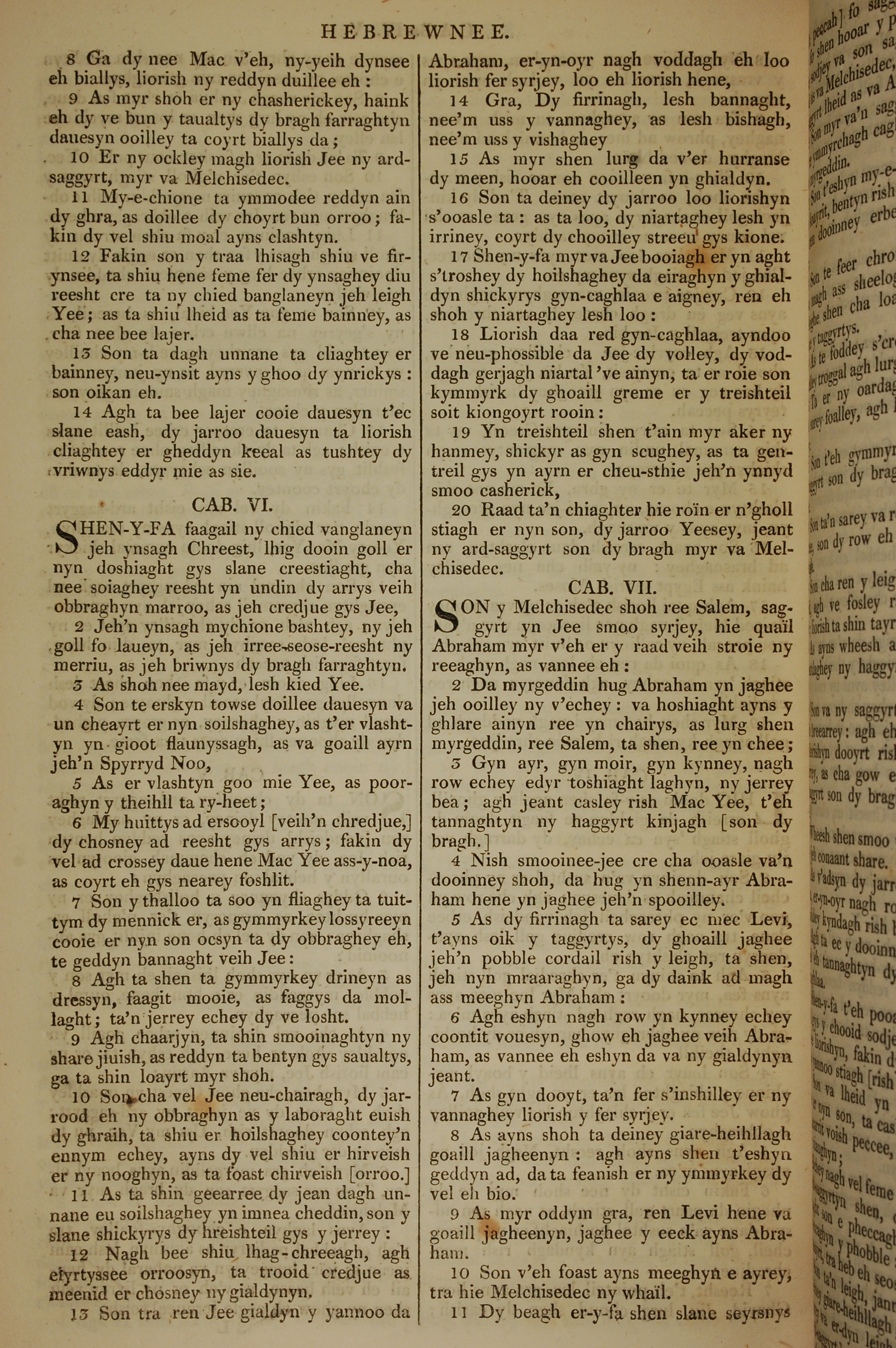 1819年曼島語聖經 希伯來書 5 章 8 節到 7 章 11 節