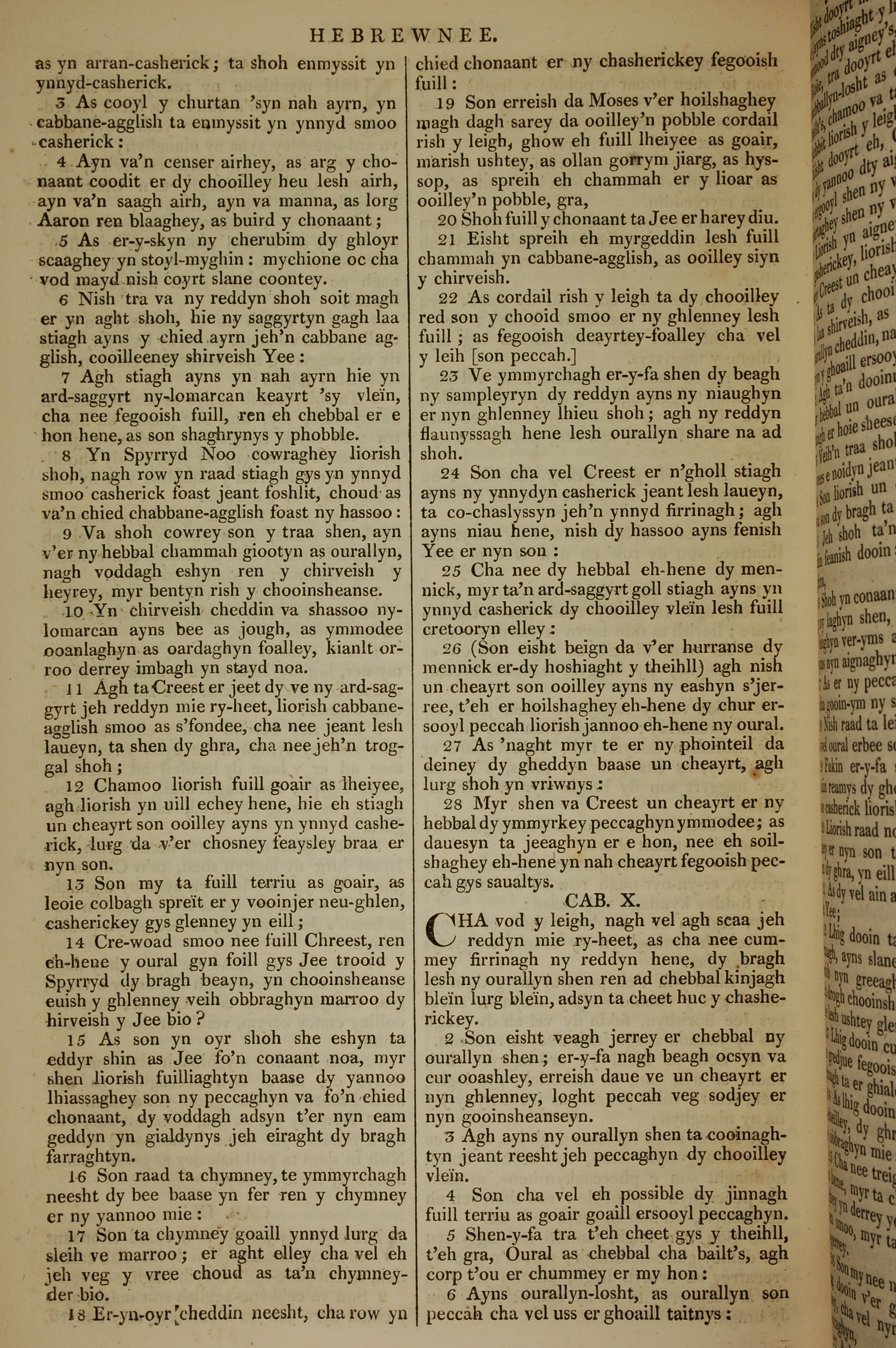 1819年曼島語聖經 希伯來書 9 章 3 節到 10 章 6 節