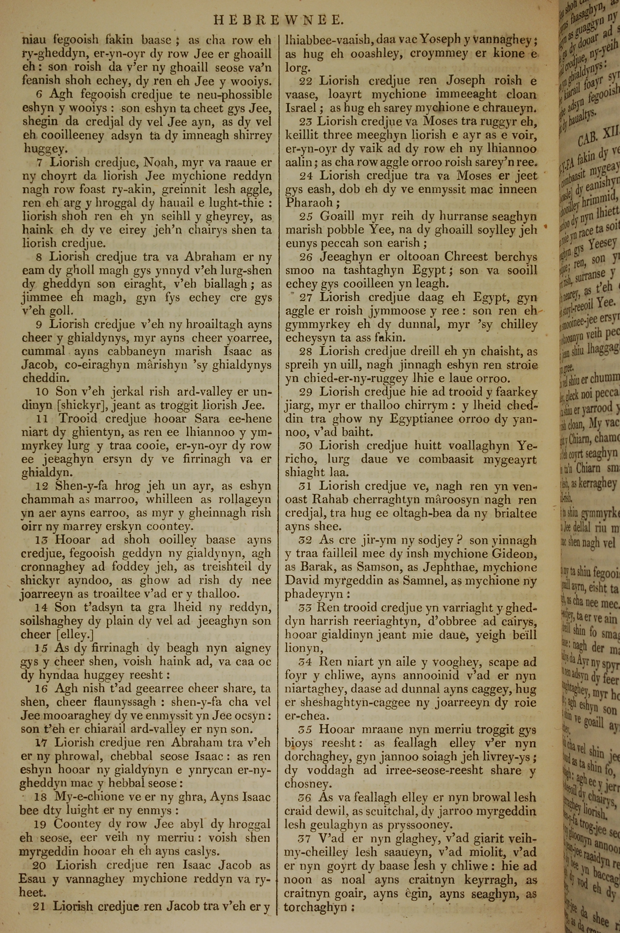1819年曼島語聖經 希伯來書 11 章 6 節到 11 章 37 節