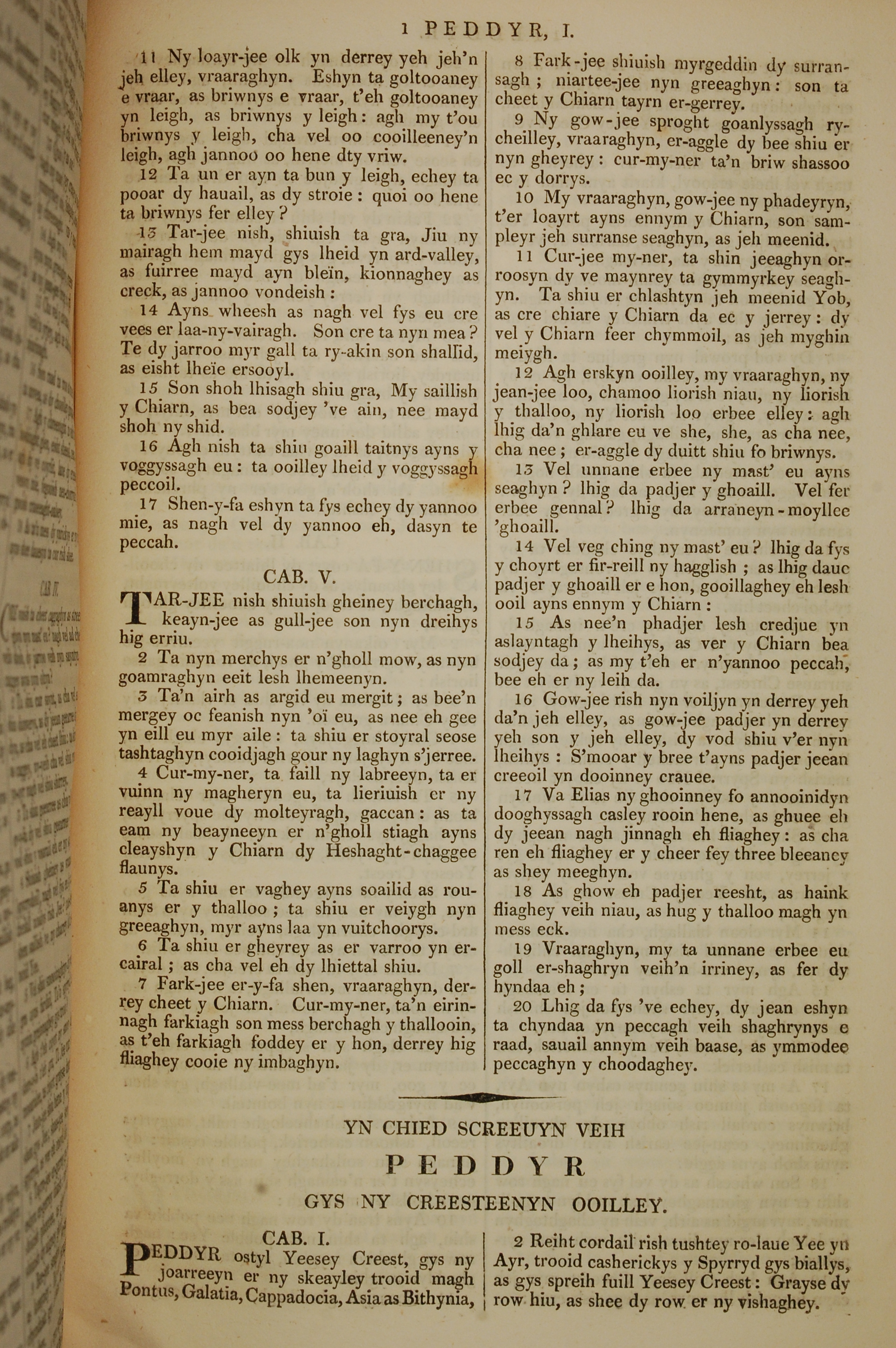1819年曼島語聖經 彼得前書 1 章 1 節到 1 章 2 節