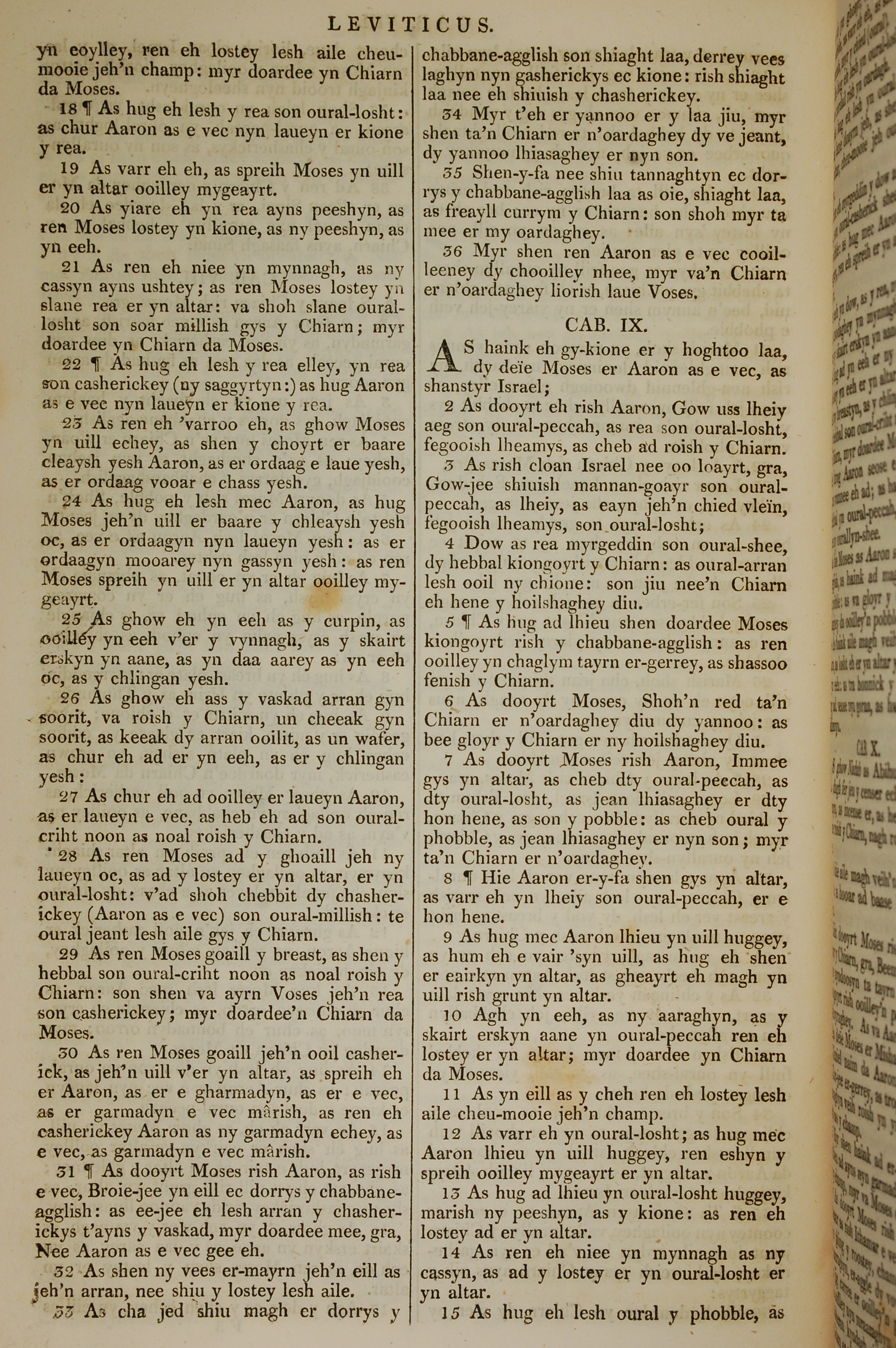 1819年曼島語聖經 利未記 8 章 18 節到 9 章 15 節
