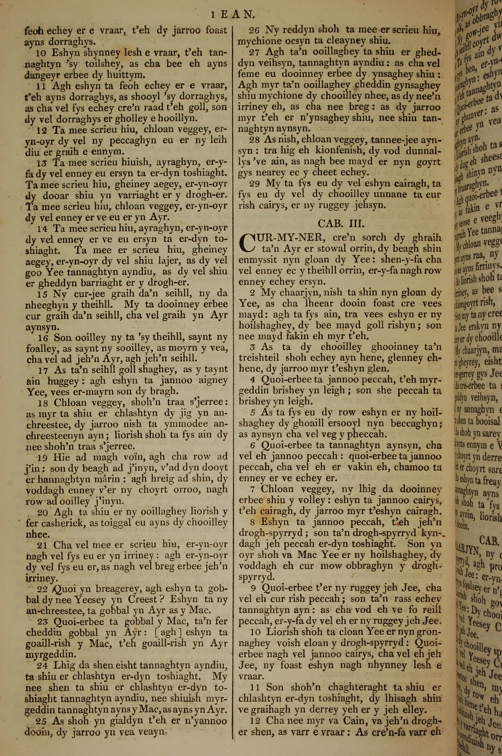 1819年曼島語聖經 約翰一書 2 章 10 節到 3 章 12 節
