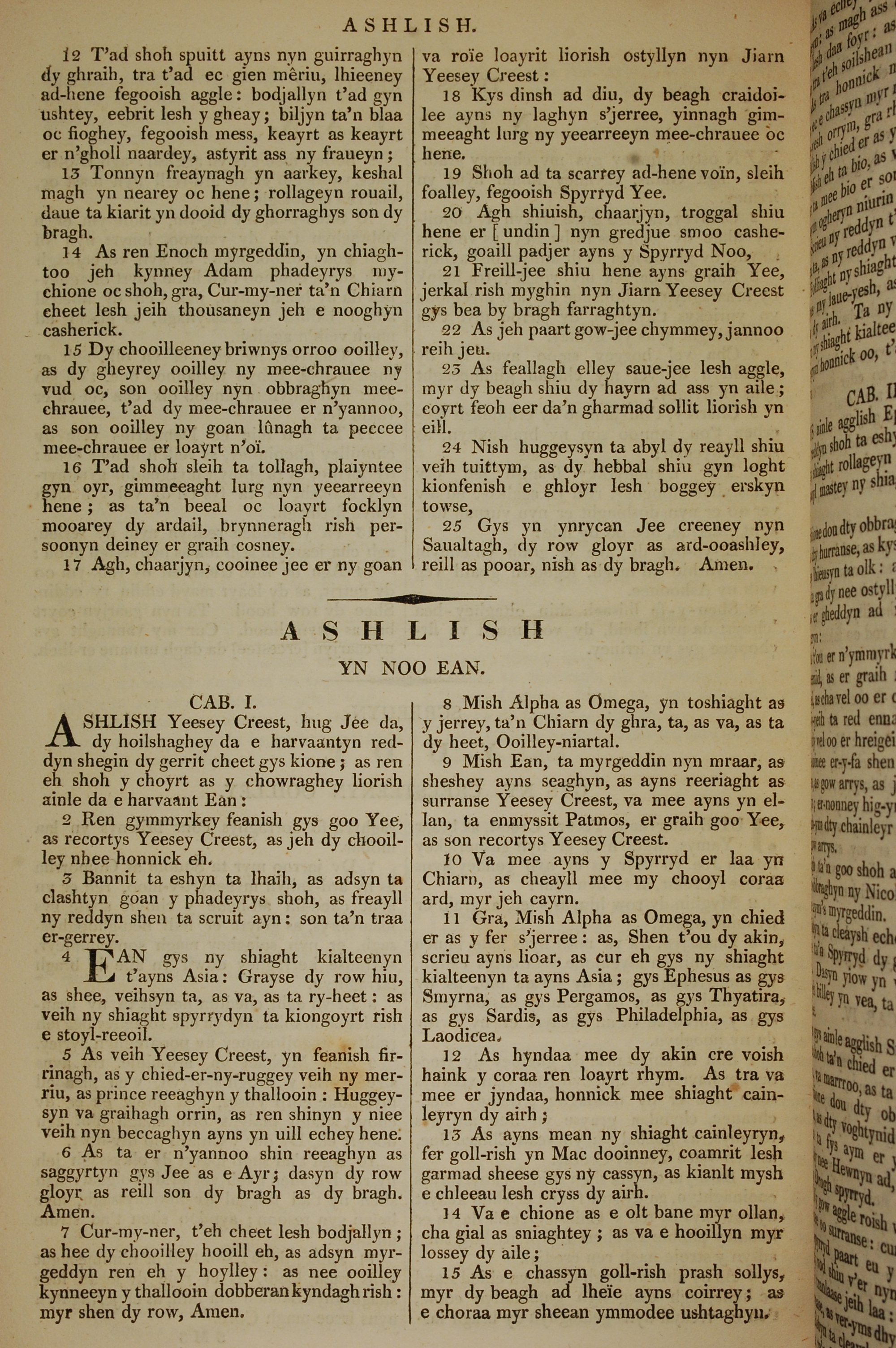 1819年曼島語聖經 啟示錄 1 章 1 節到 1 章 15 節