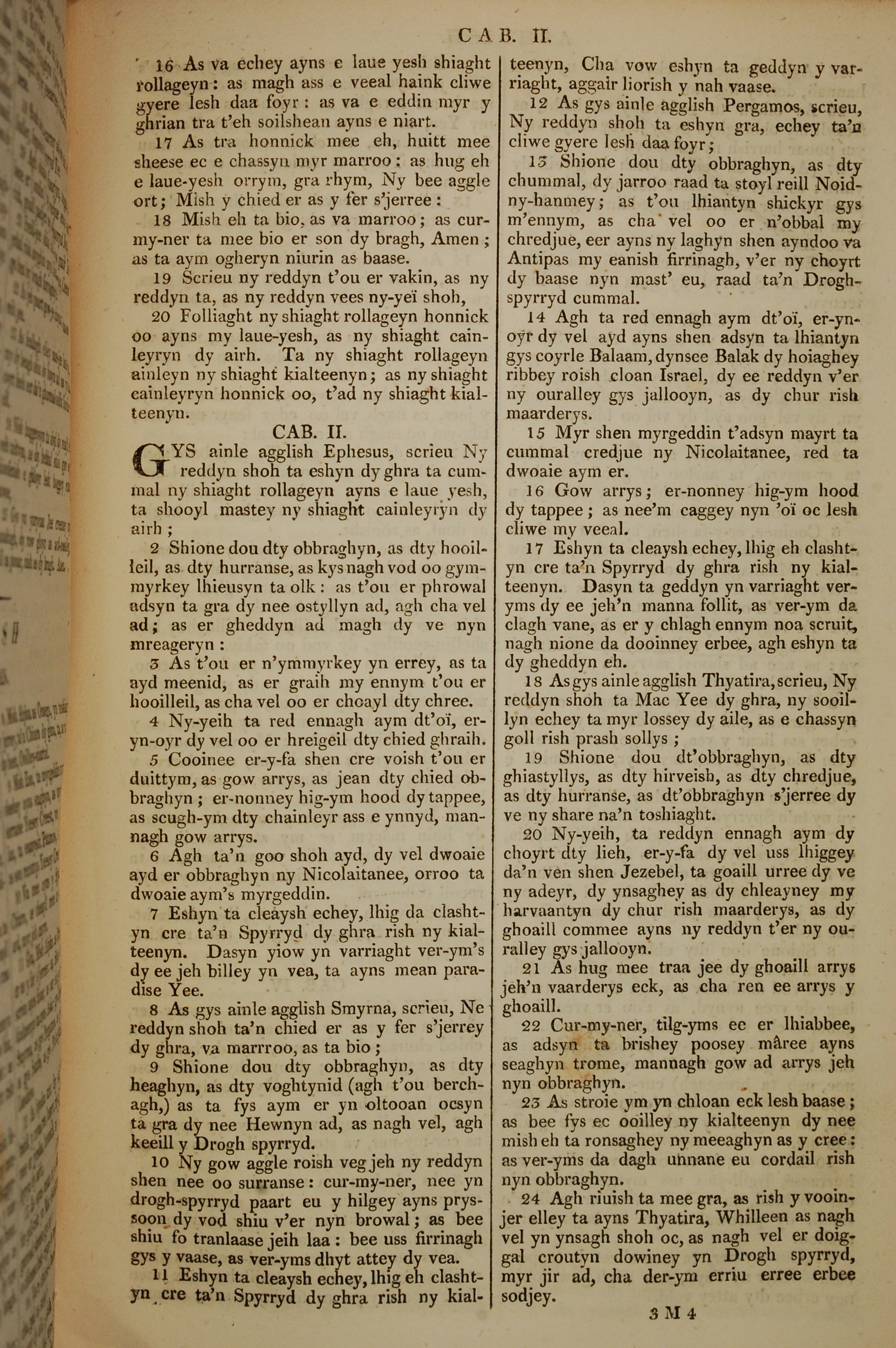 1819年曼島語聖經 啟示錄 1 章 16 節到 2 章 24 節
