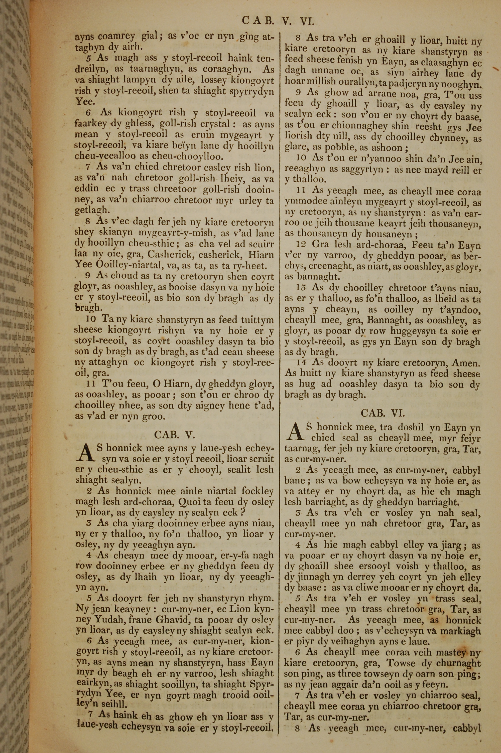 1819年曼島語聖經 啟示錄 4 章 5 節到 6 章 8 節