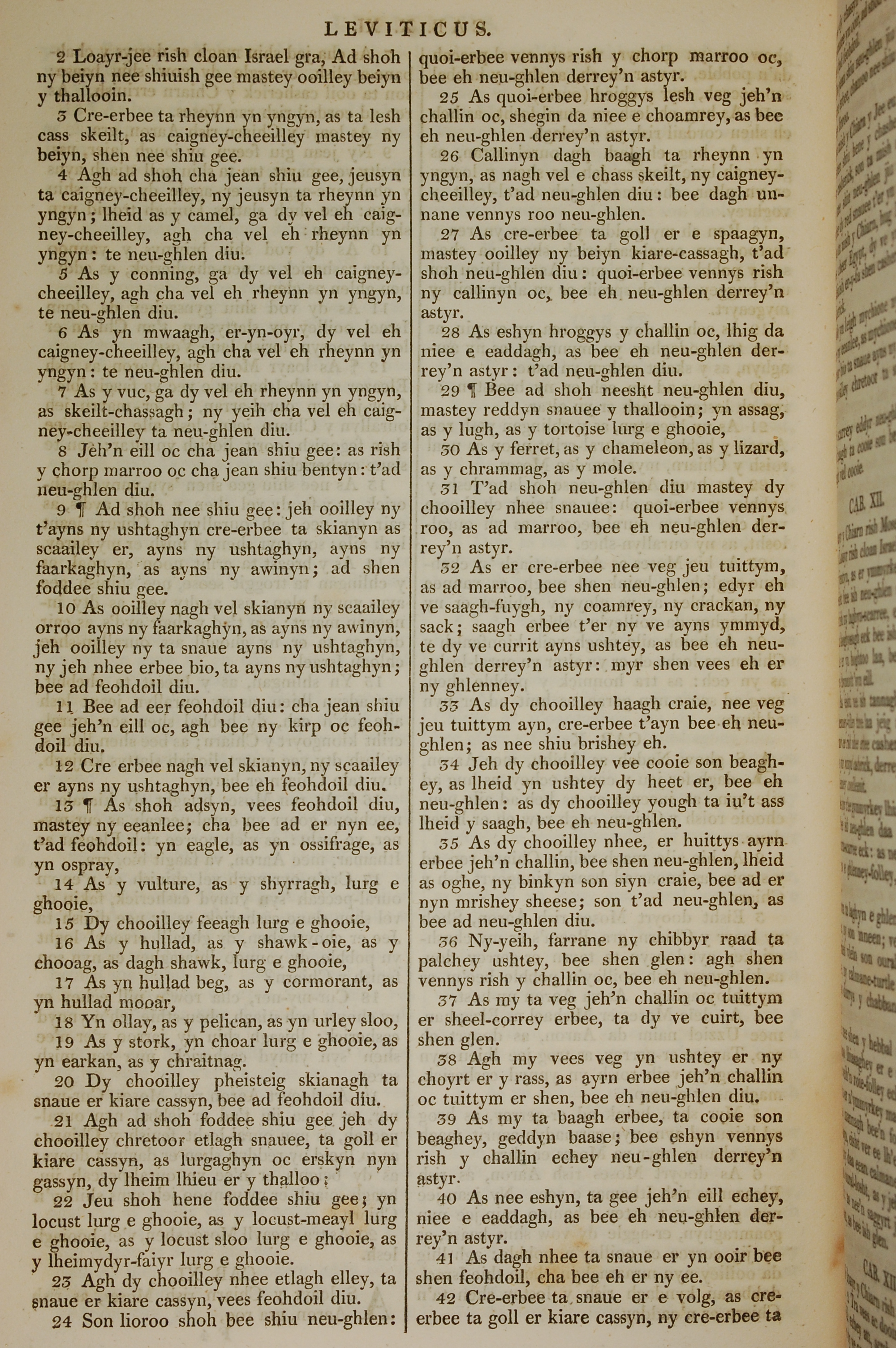 1819年曼島語聖經 利未記 11 章 2 節到 11 章 42 節