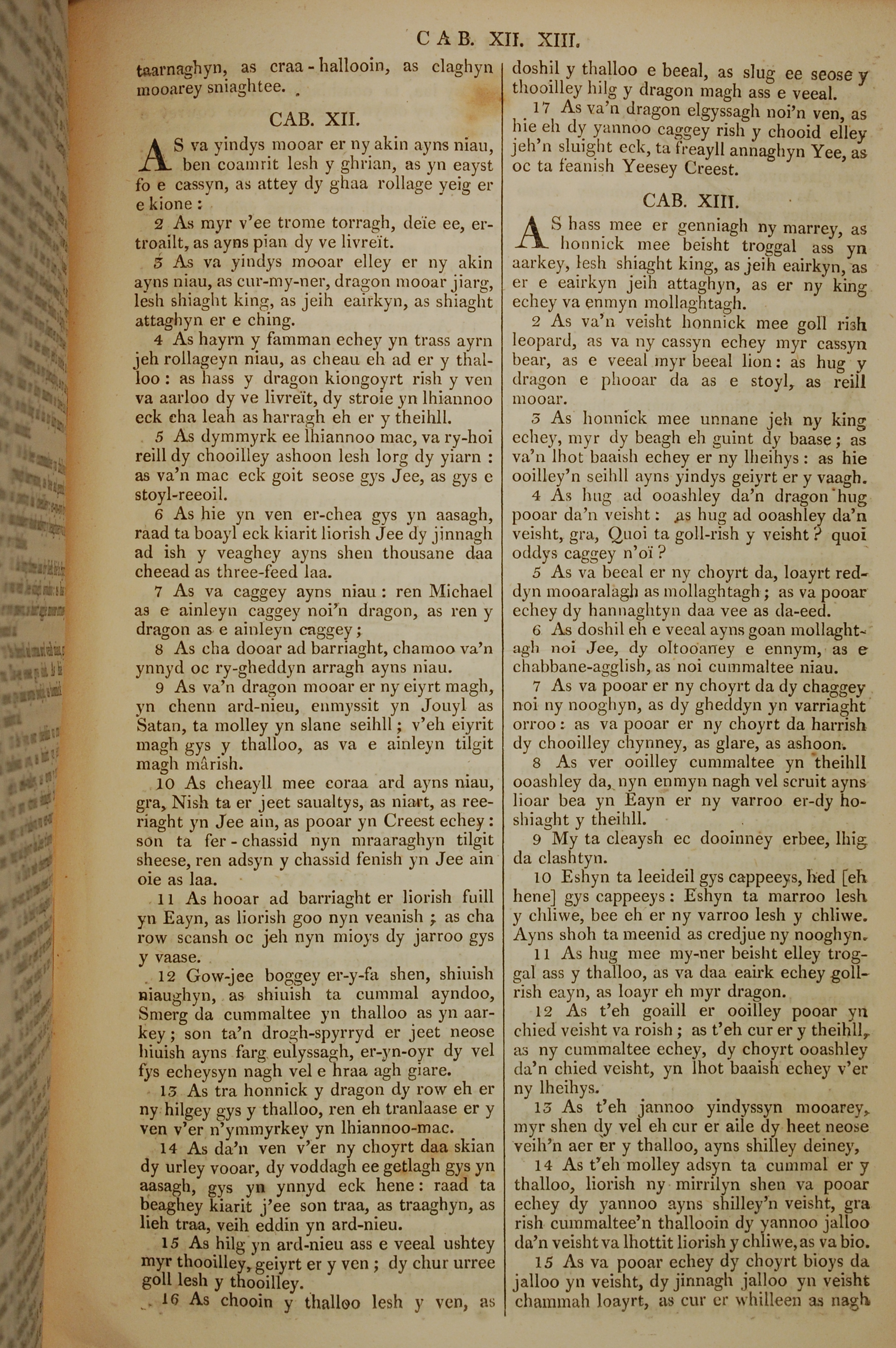 1819年曼島語聖經 啟示錄 12 章 1 節到 13 章 15 節