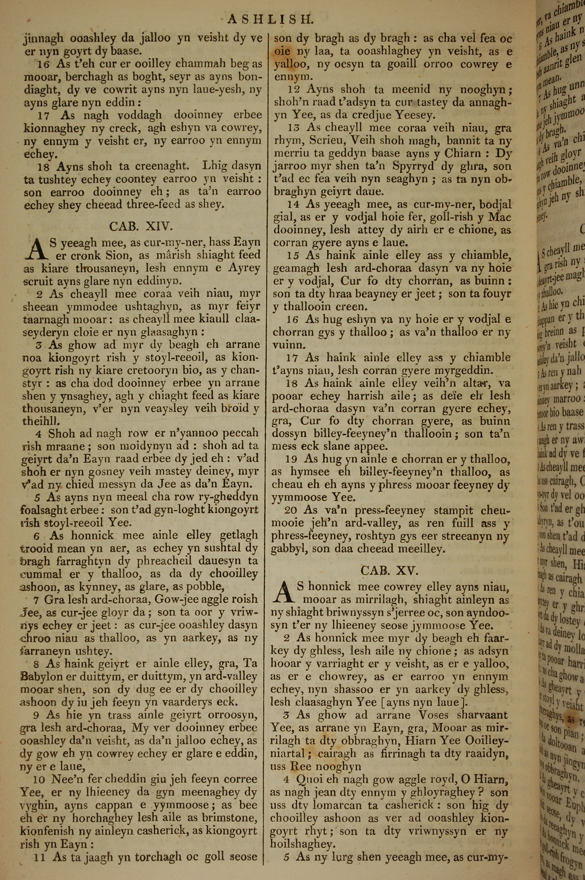 1819年曼島語聖經 啟示錄 13 章 16 節到 15 章 5 節