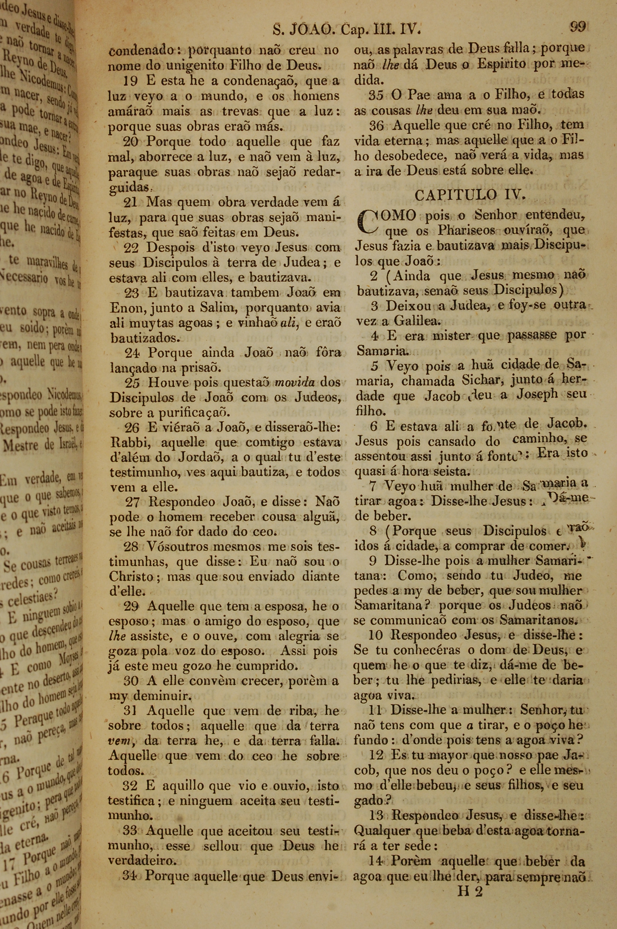 1819年葡萄牙語新約全書 約翰福音 3 章 19 節到 4 章 14 節