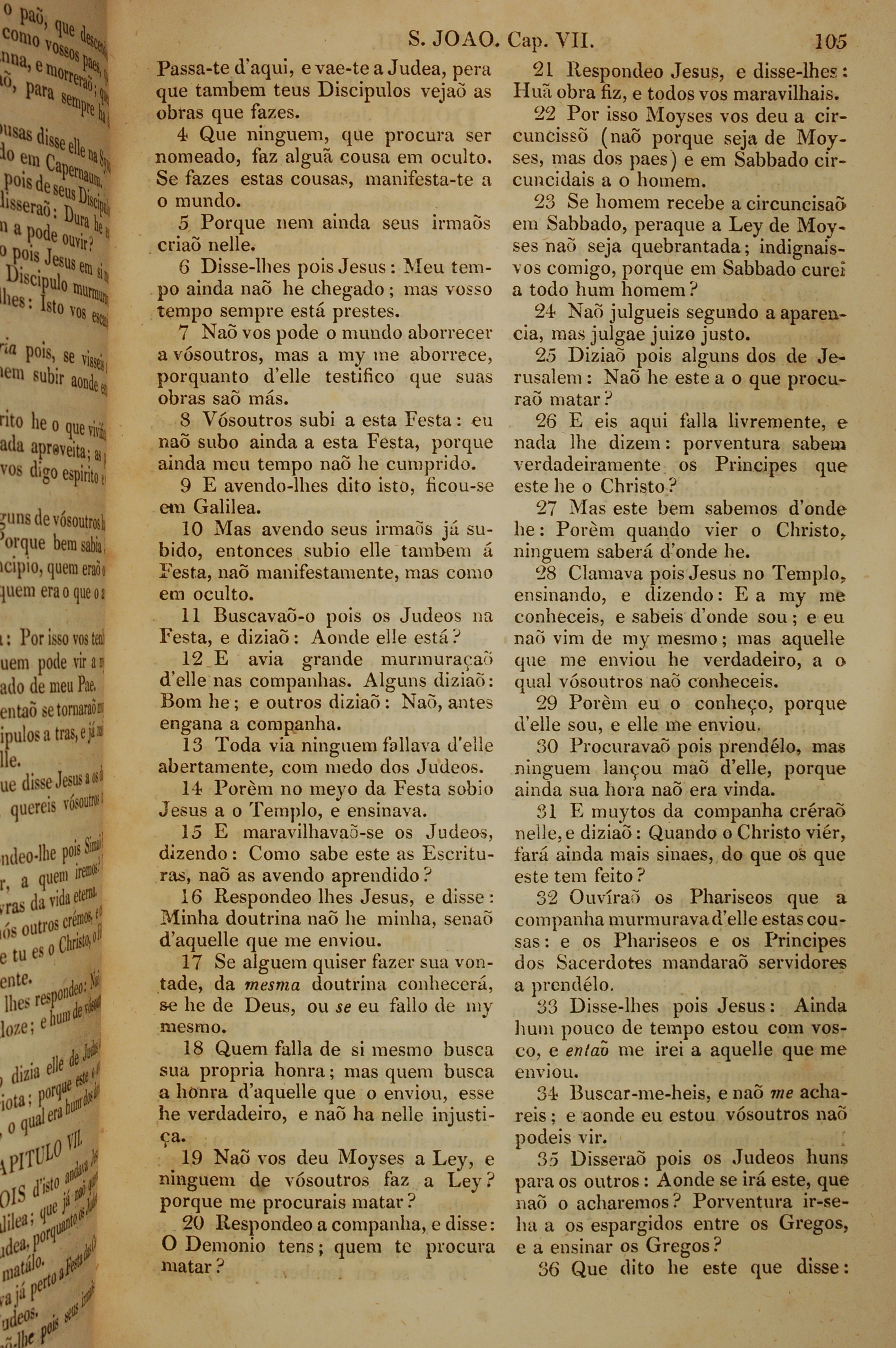 1819年葡萄牙語新約全書 約翰福音 7 章 4 節到 7 章 36 節
