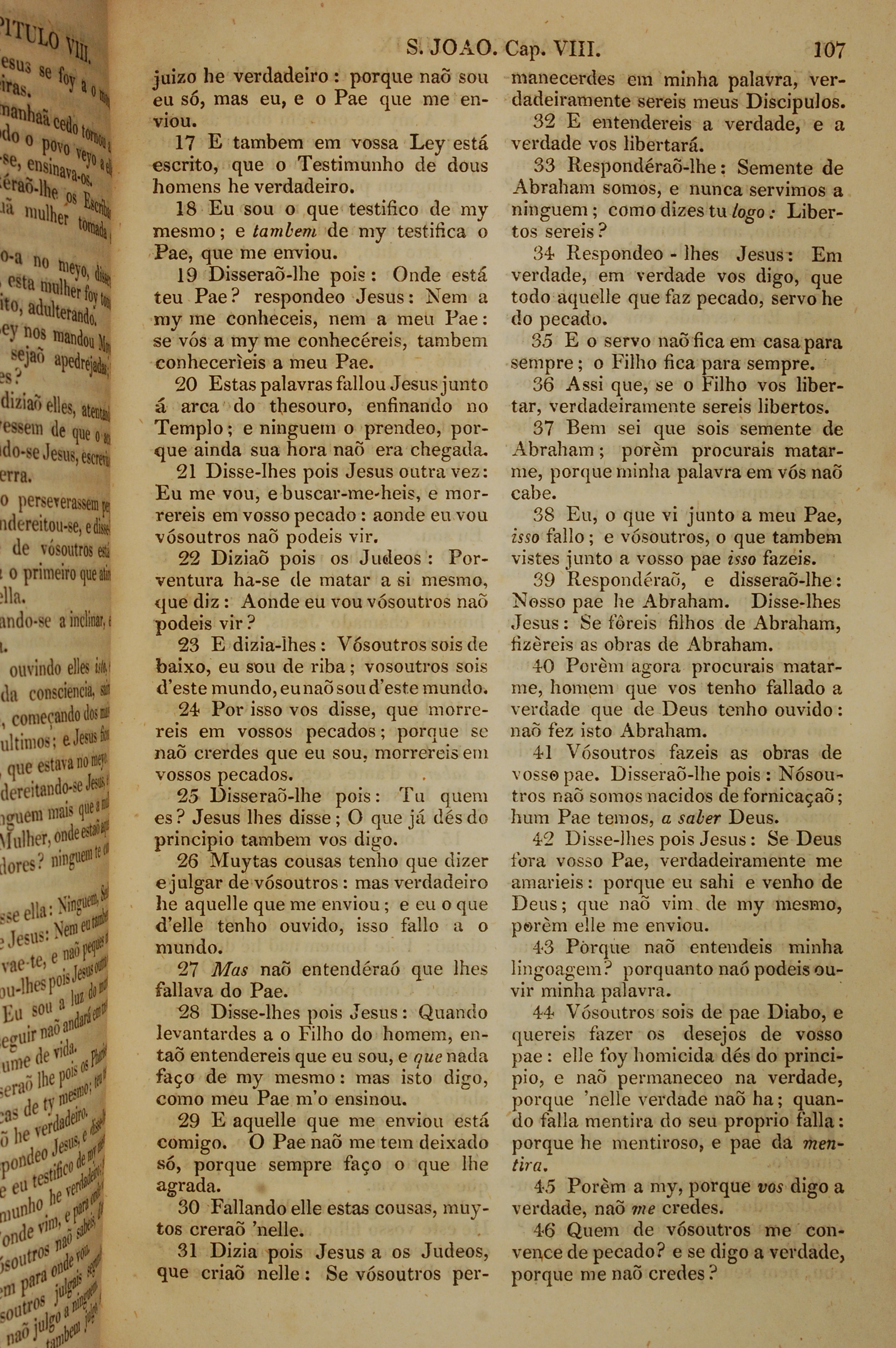 1819年葡萄牙語新約全書 約翰福音 8 章 17 節到 8 章 46 節