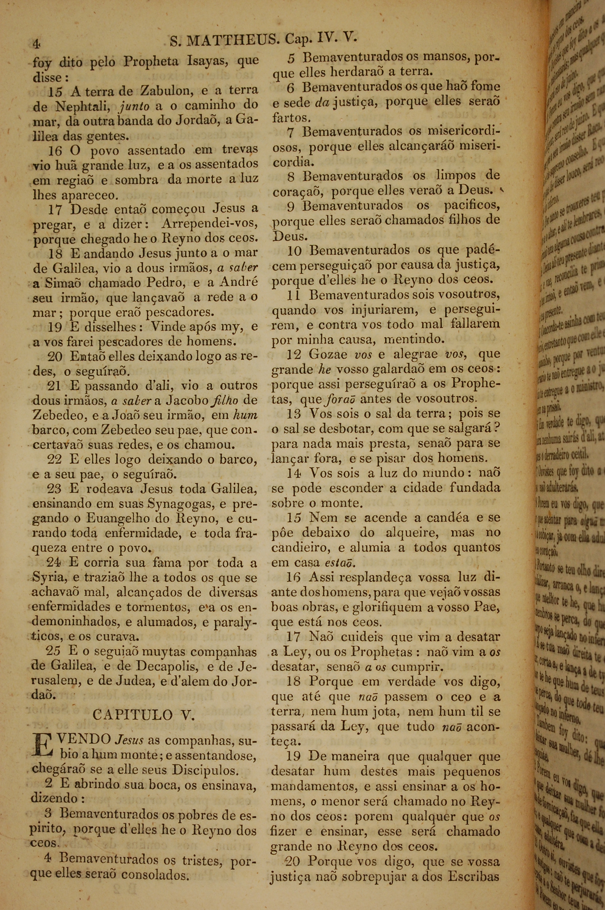 1819年葡萄牙語新約全書 馬太福音 4 章 15 節到 5 章 20 節