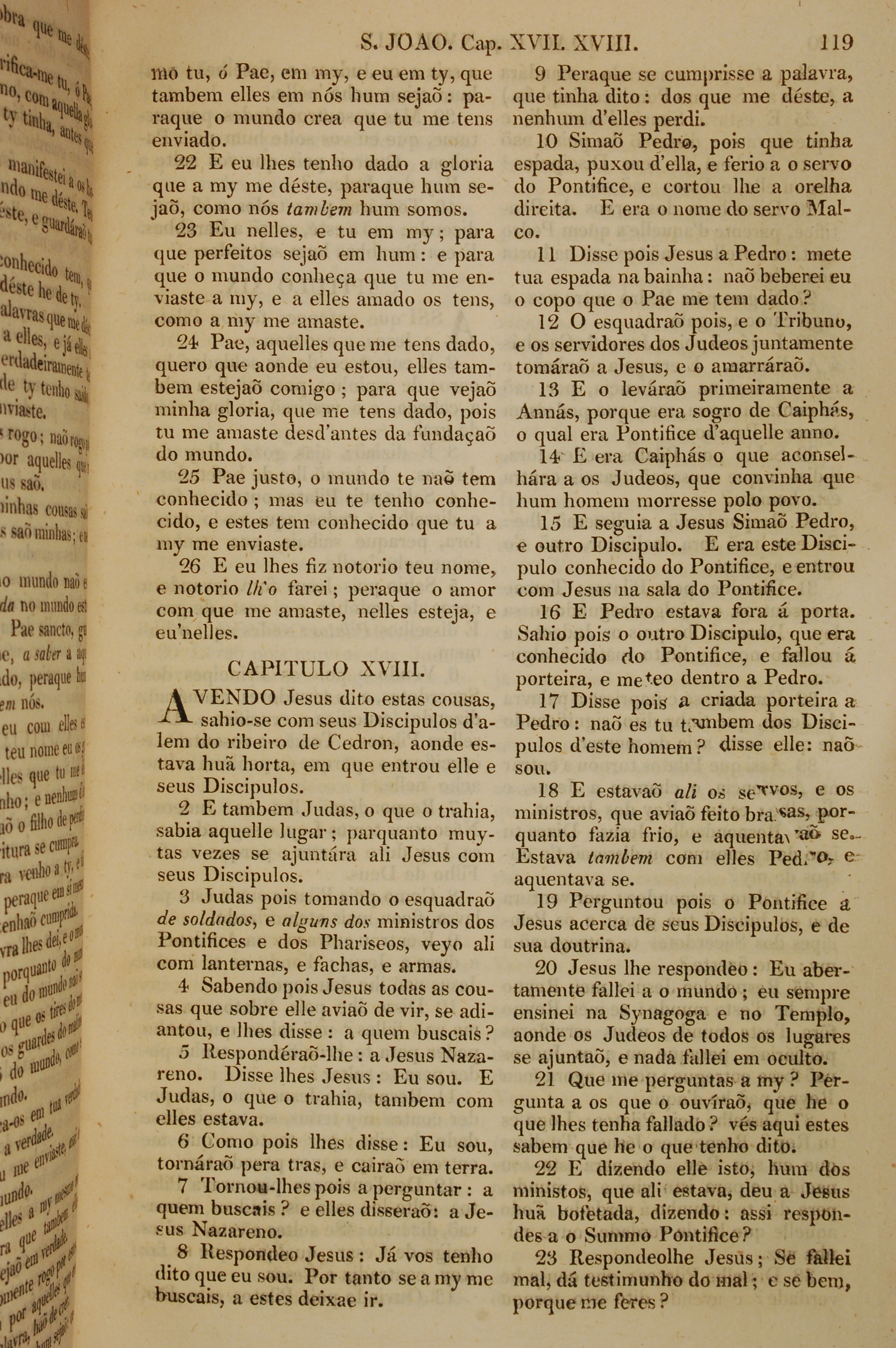 1819年葡萄牙語新約全書 約翰福音 17 章 22 節到 18 章 23 節