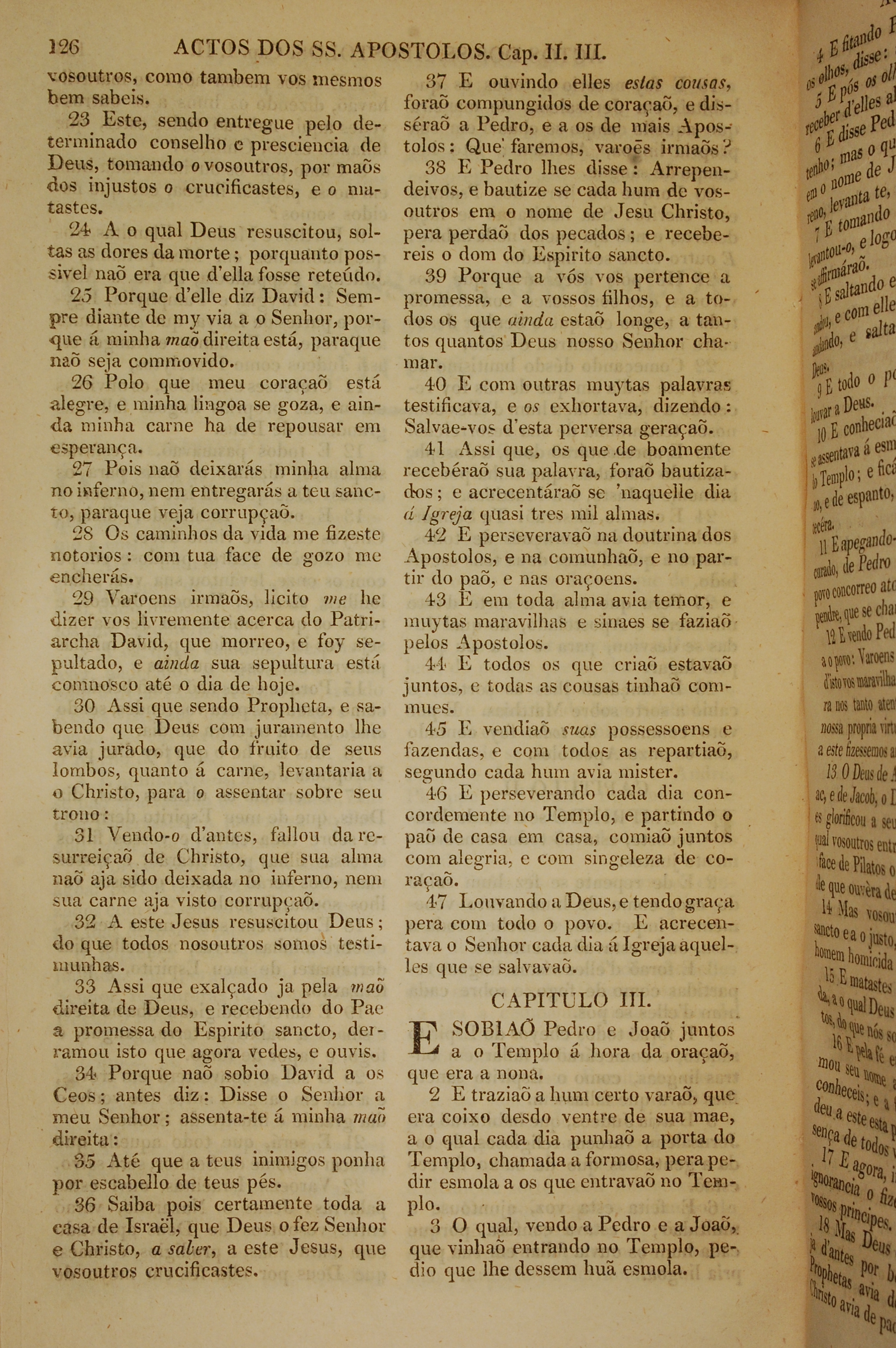 1819年葡萄牙語新約全書 使徒行傳 2 章 23 節到 3 章 3 節