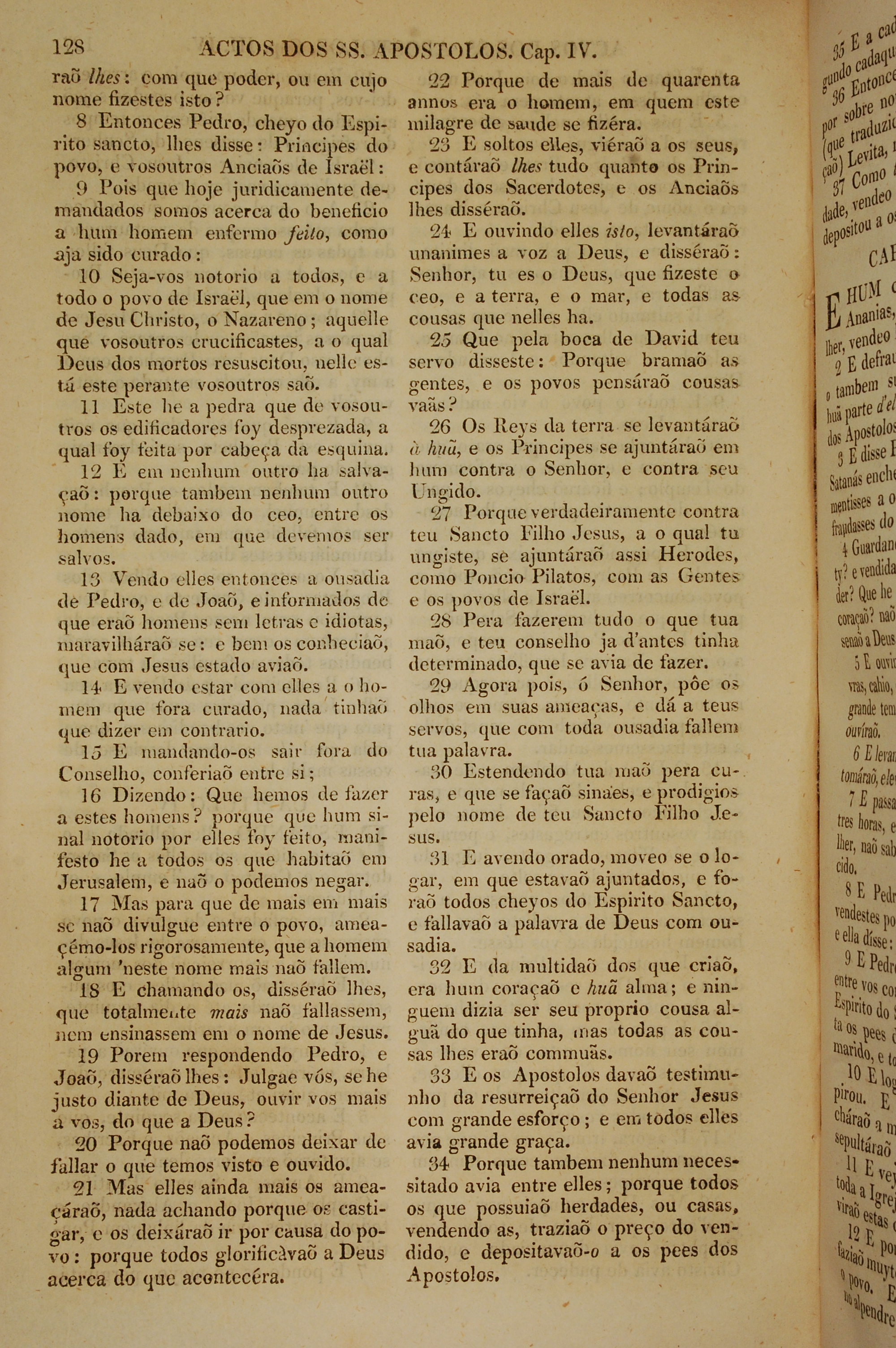 1819年葡萄牙語新約全書 使徒行傳 4 章 8 節到 4 章 34 節