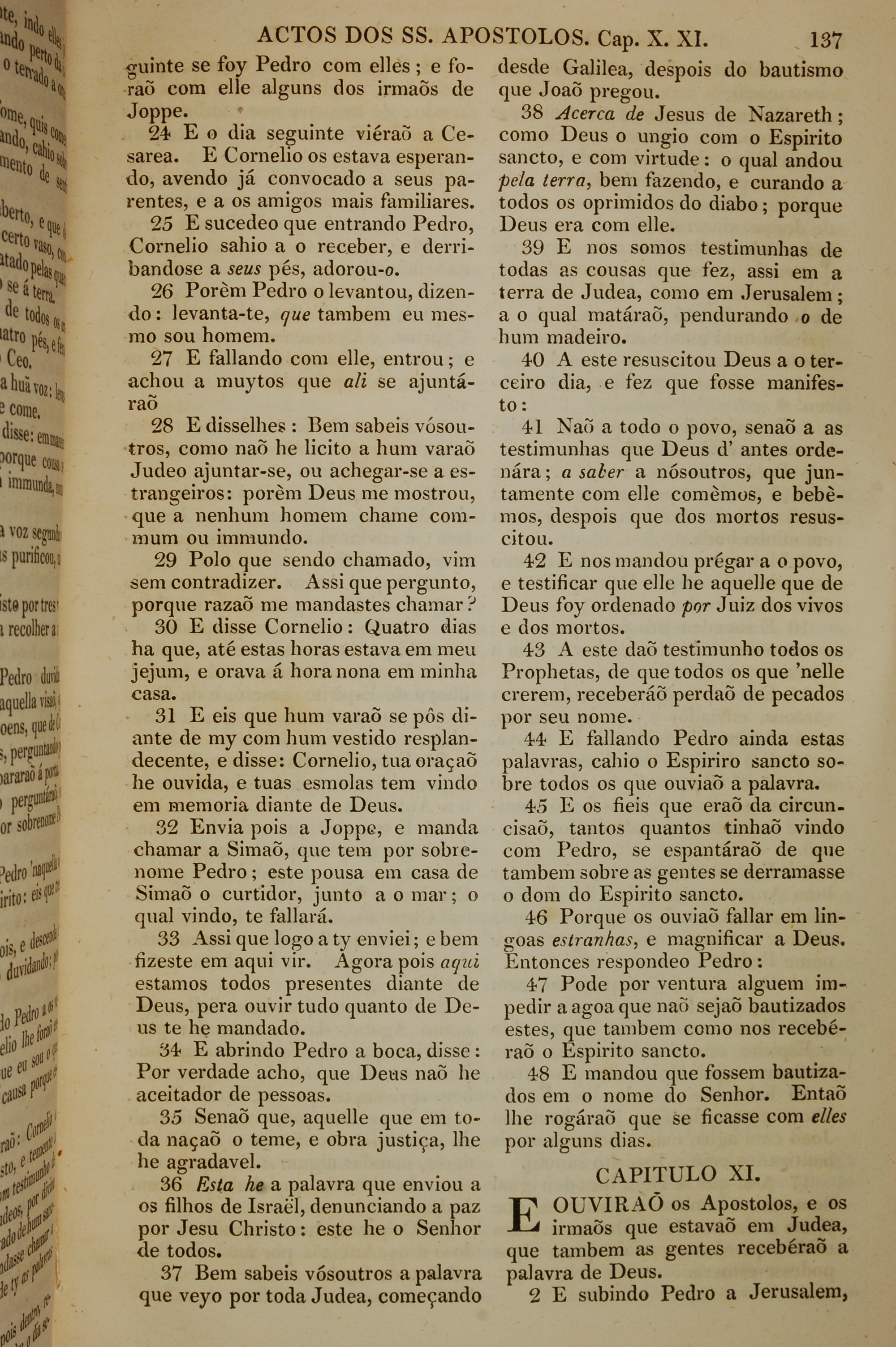 1819年葡萄牙語新約全書 使徒行傳 10 章 24 節到 11 章 2 節
