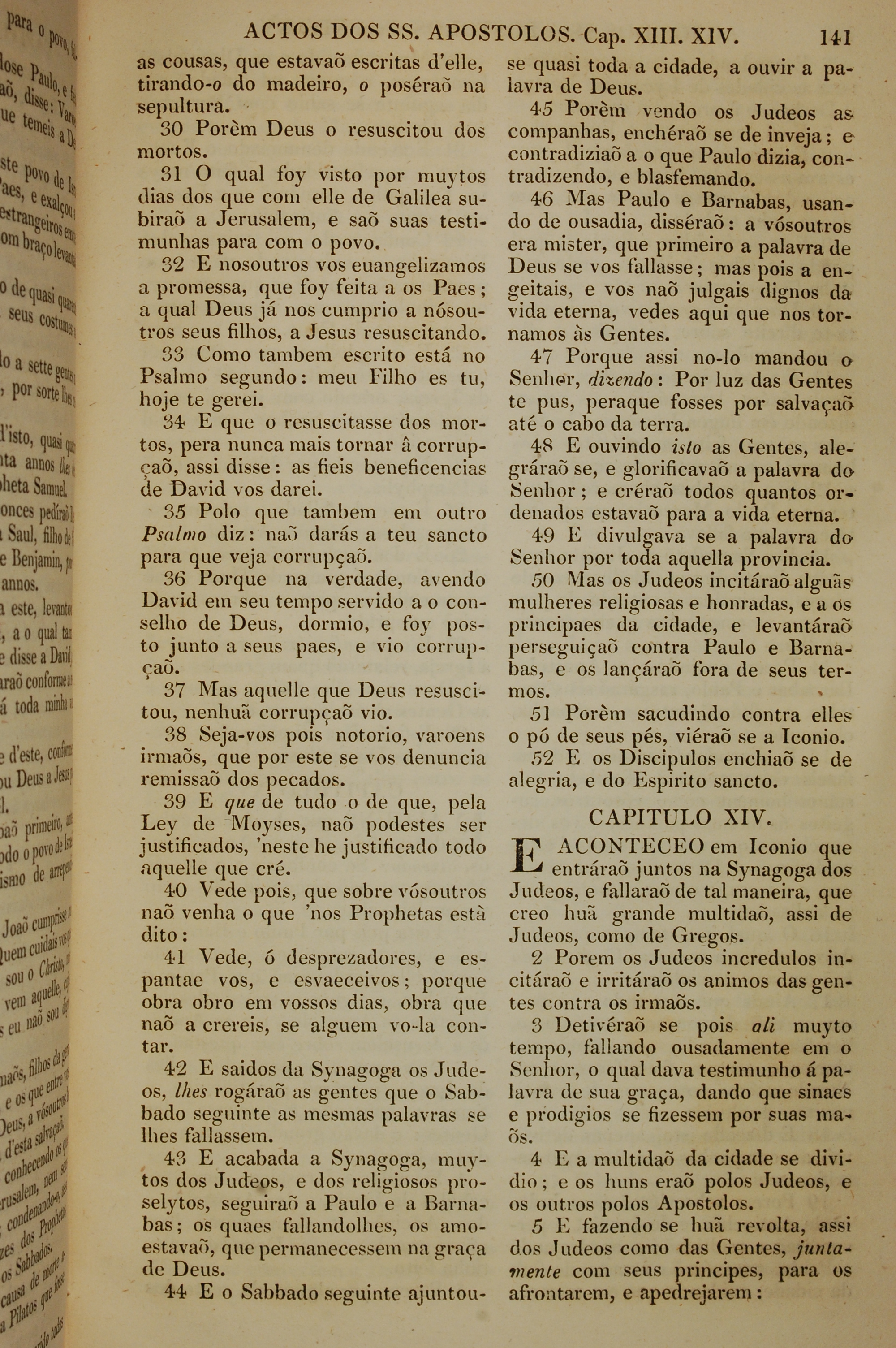 1819年葡萄牙語新約全書 使徒行傳 13 章 30 節到 14 章 5 節