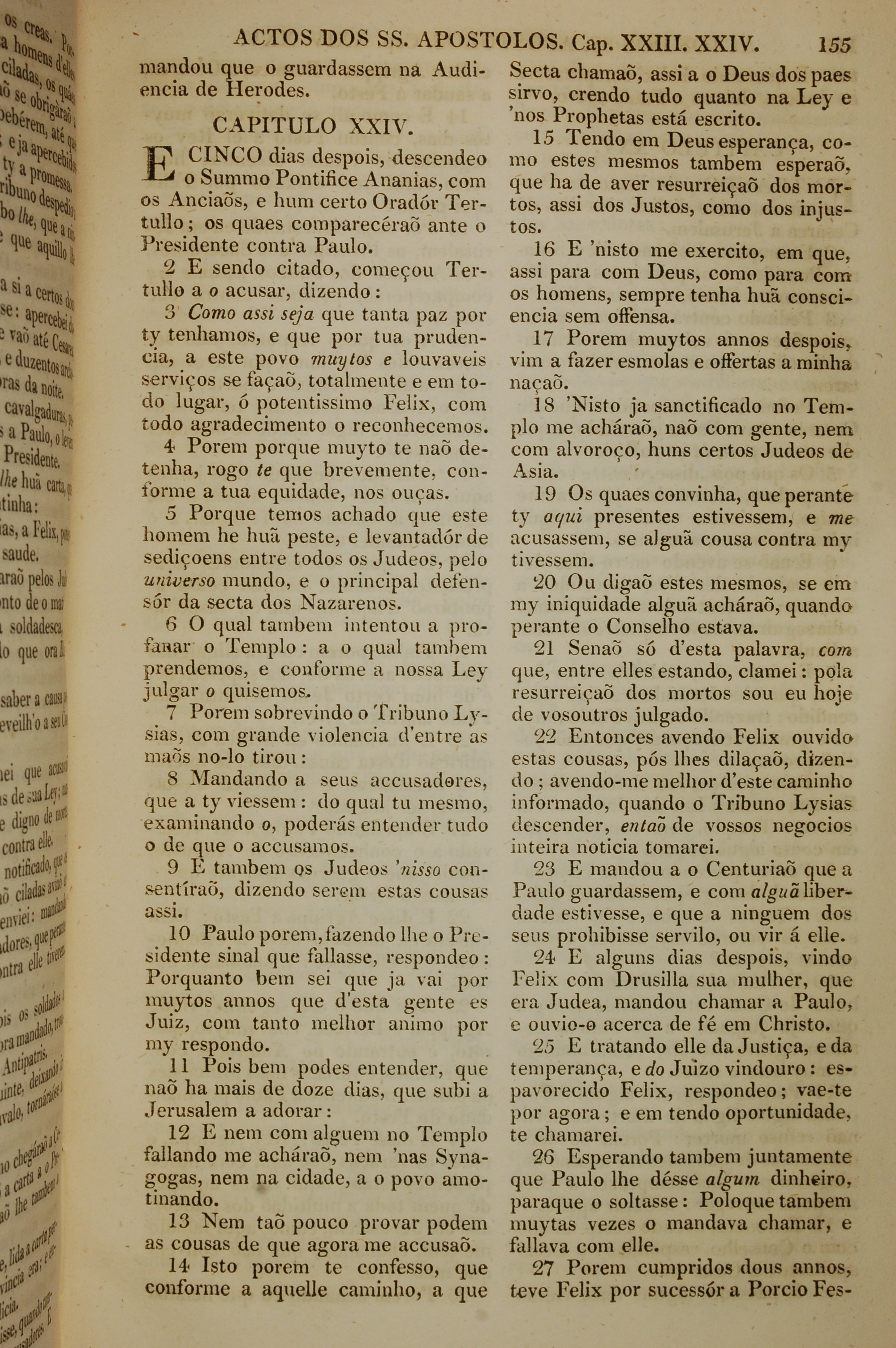 1819年葡萄牙語新約全書 使徒行傳 24 章 1 節到 24 章 27 節
