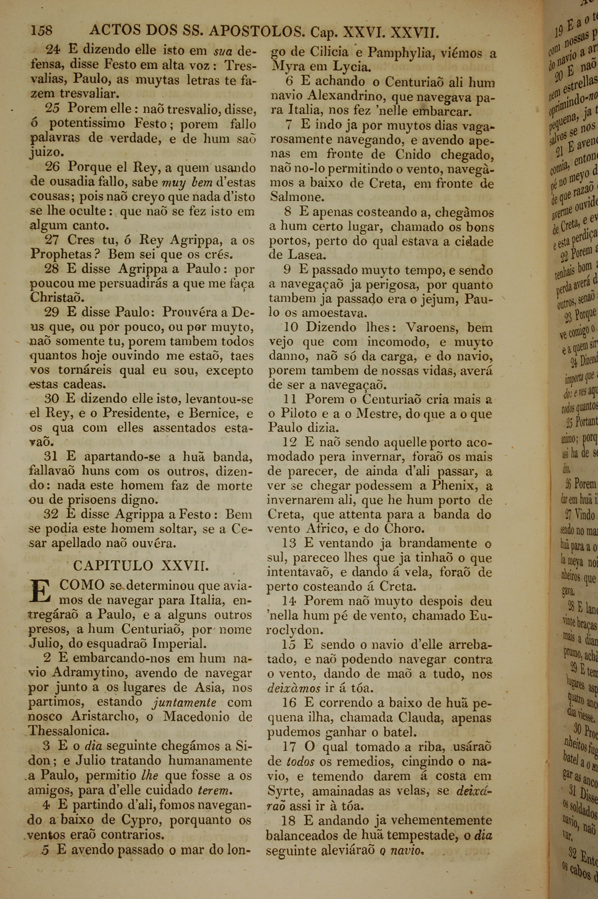 1819年葡萄牙語新約全書 使徒行傳 26 章 24 節到 27 章 18 節