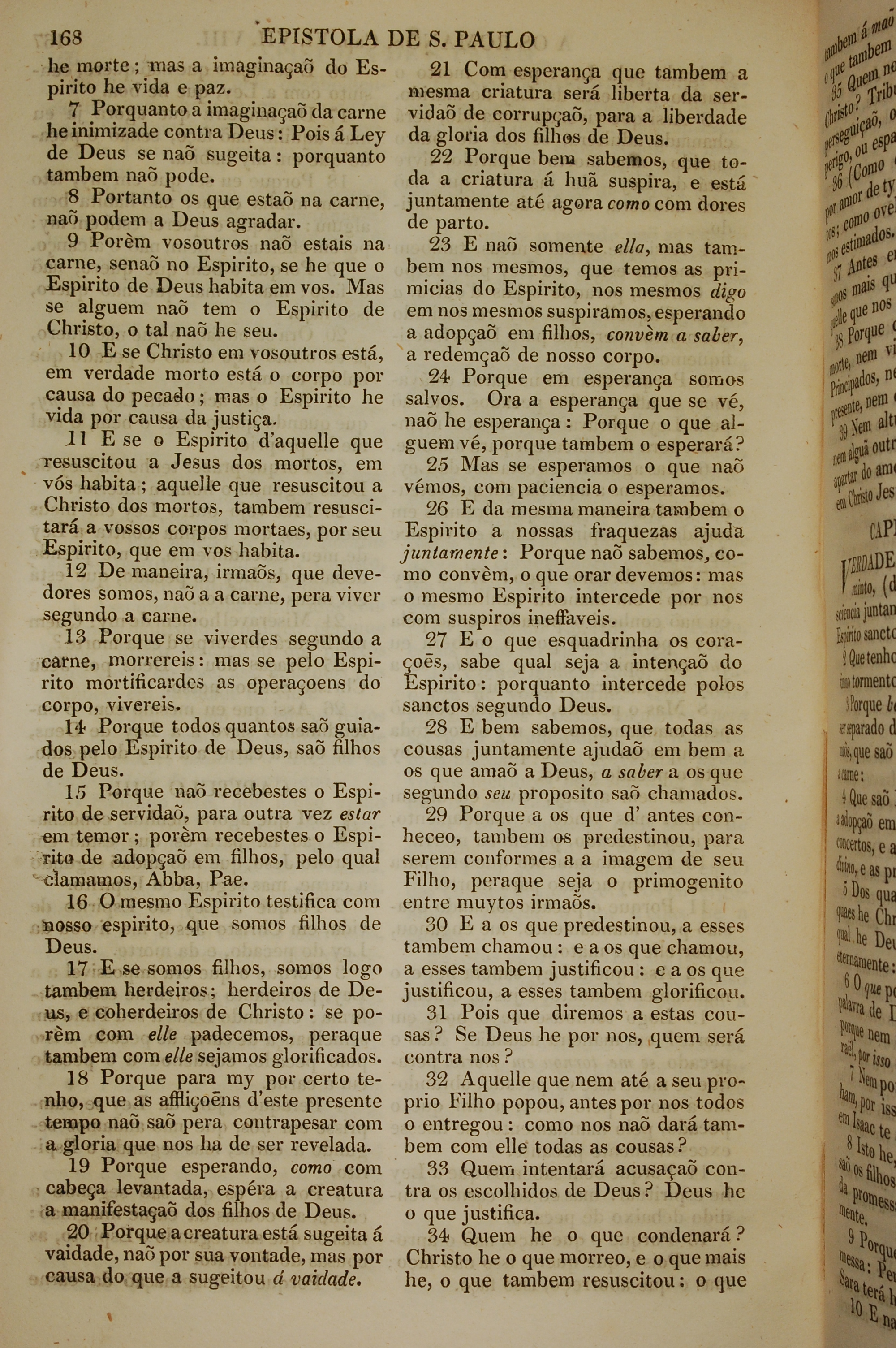 1819年葡萄牙語新約全書 羅馬書 8 章 7 節到 8 章 34 節