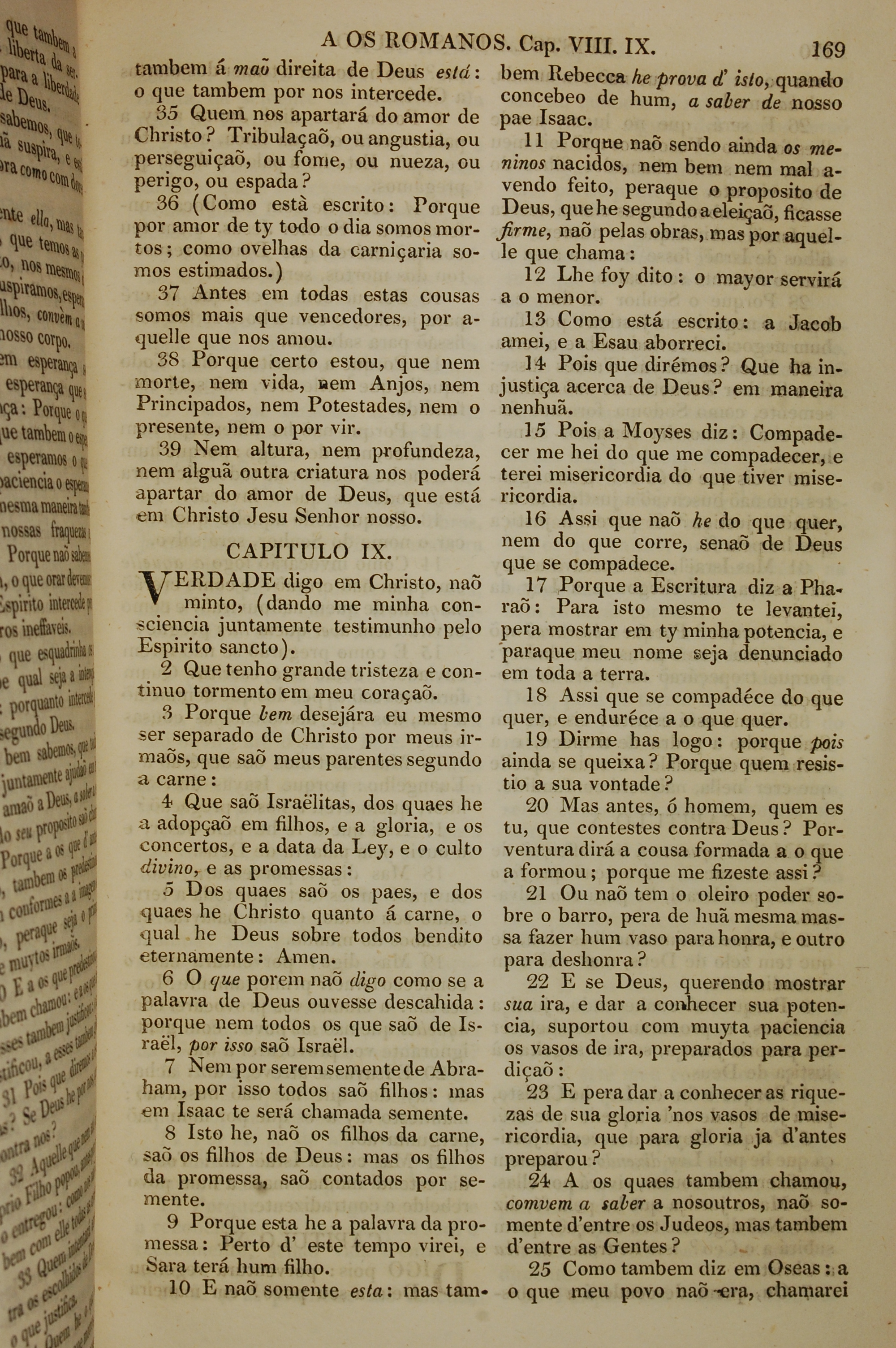 1819年葡萄牙語新約全書 羅馬書 8 章 35 節到 9 章 25 節