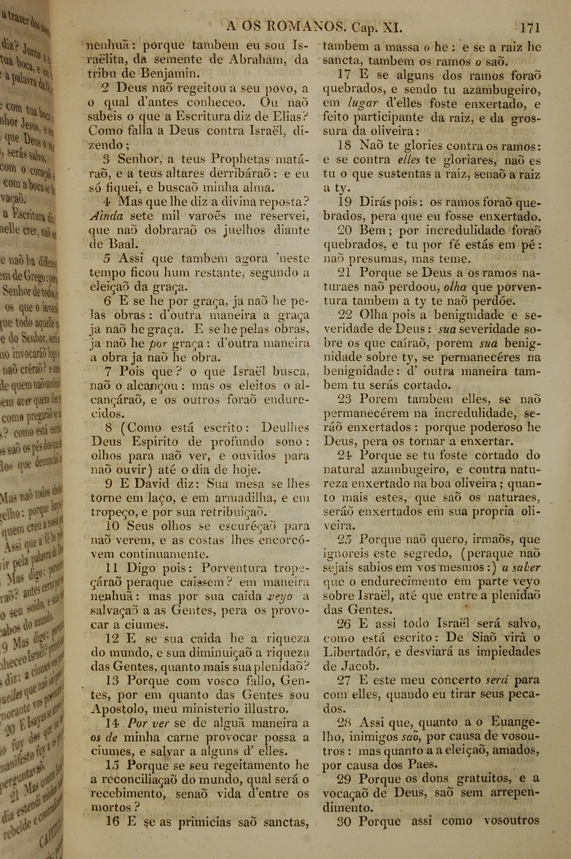 1819年葡萄牙語新約全書 羅馬書 11 章 2 節到 11 章 30 節