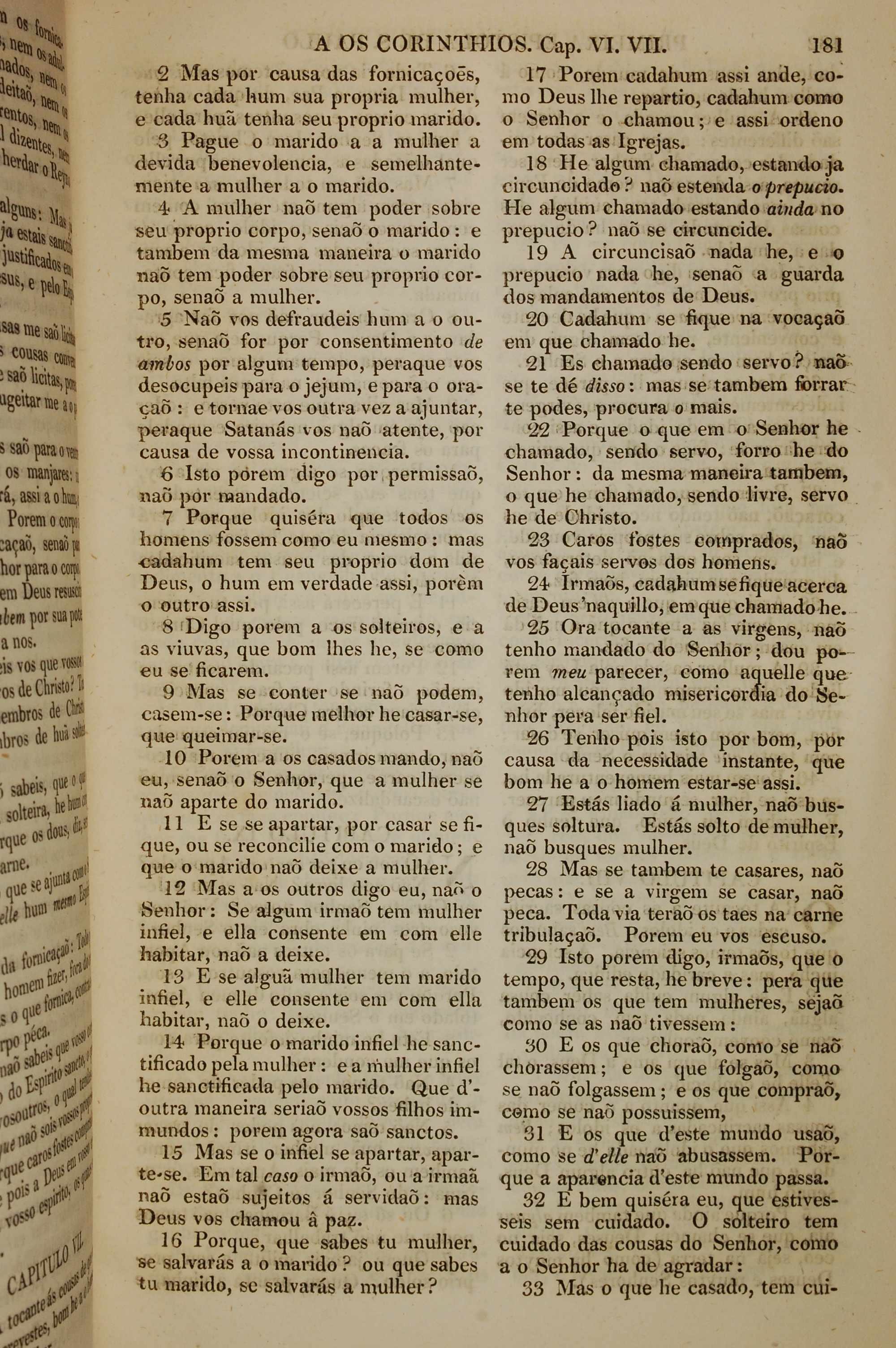 1819年葡萄牙語新約全書 哥林多前書 7 章 2 節到 7 章 33 節