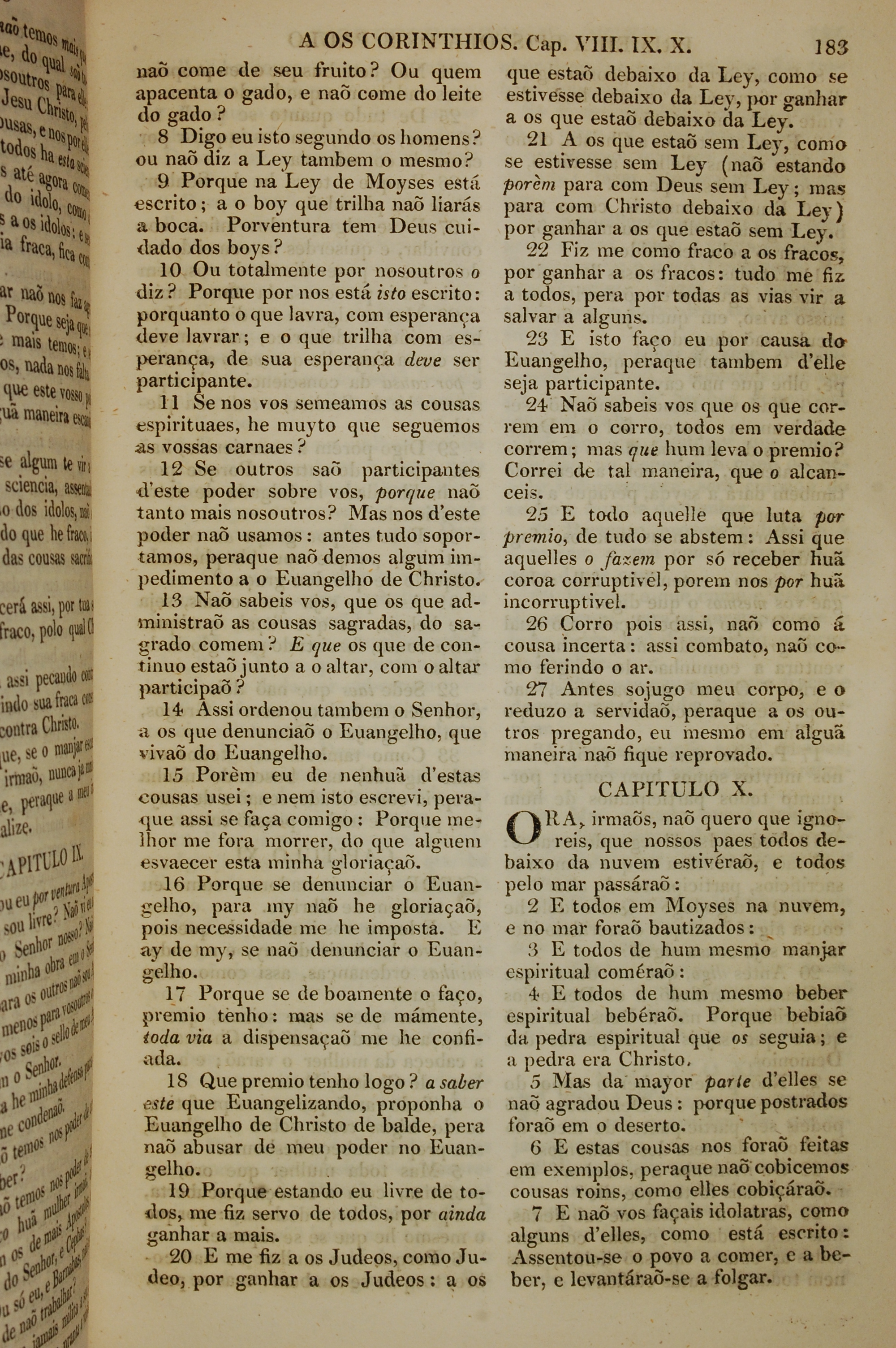 1819年葡萄牙語新約全書 哥林多前書 9 章 8 節到 10 章 7 節