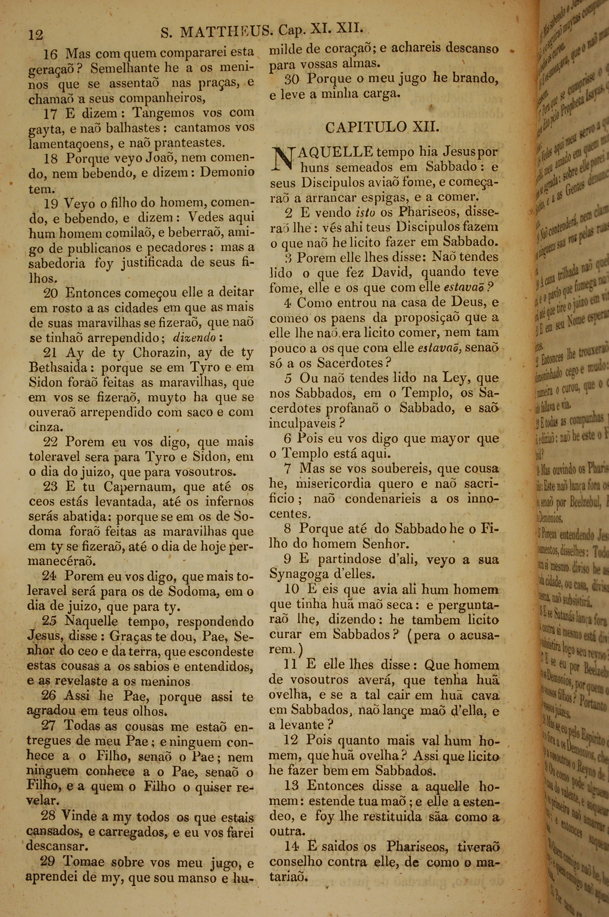 1819年葡萄牙語新約全書 馬太福音 11 章 16 節到 12 章 14 節
