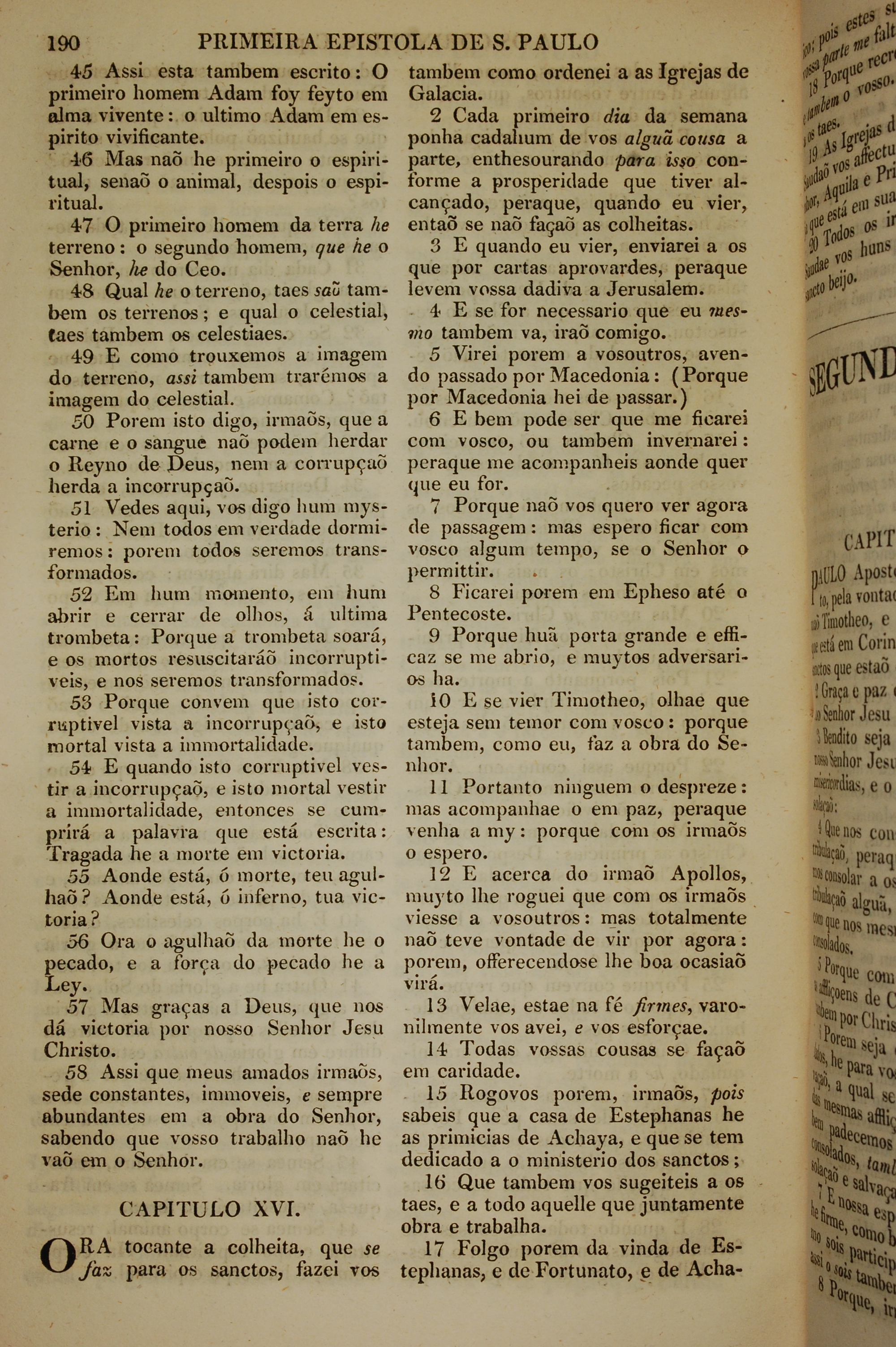 1819年葡萄牙語新約全書 哥林多前書 15 章 45 節到 16 章 17 節