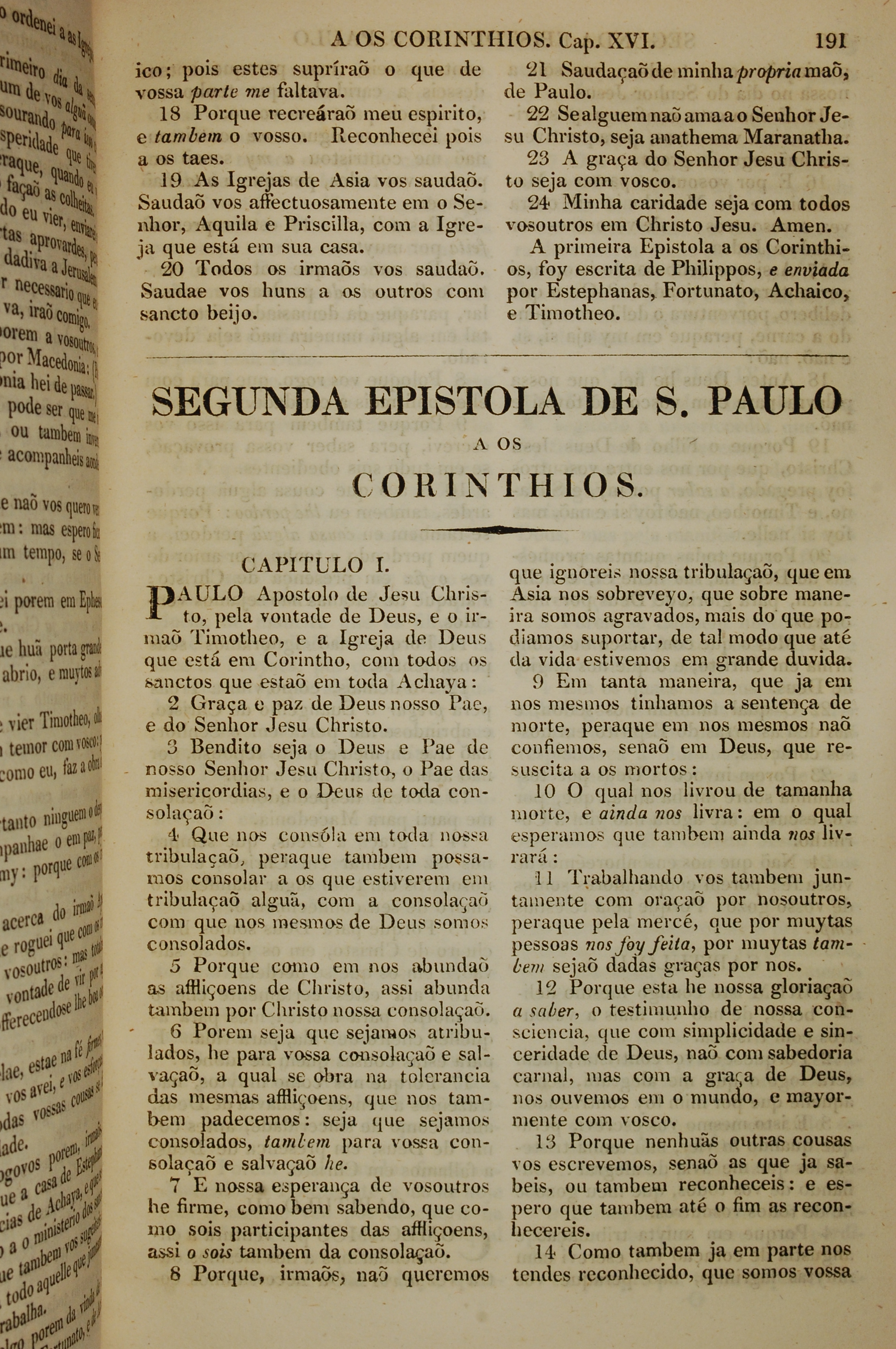 1819年葡萄牙語新約全書 哥林多後書 1 章 1 節到 1 章 14 節