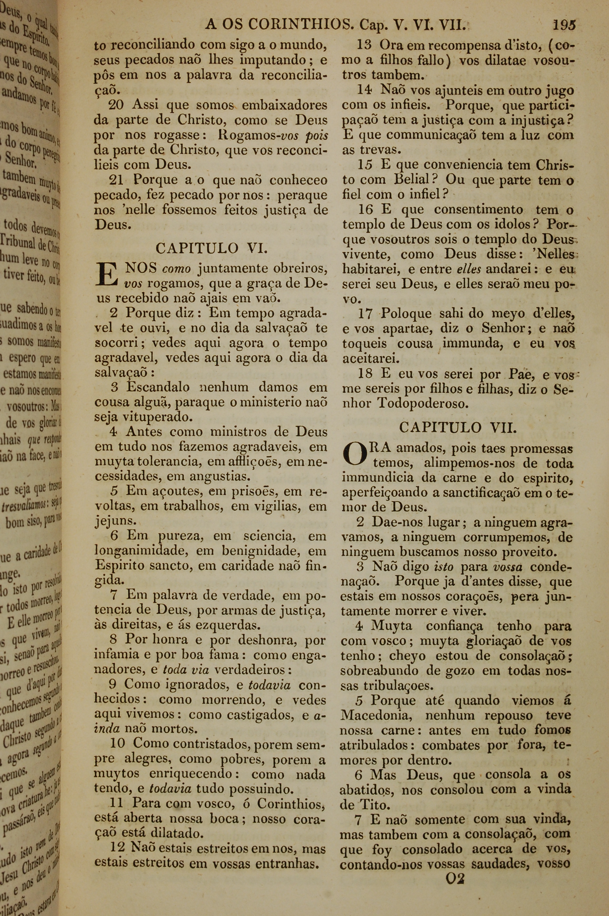 1819年葡萄牙語新約全書 哥林多後書 5 章 20 節到 7 章 7 節