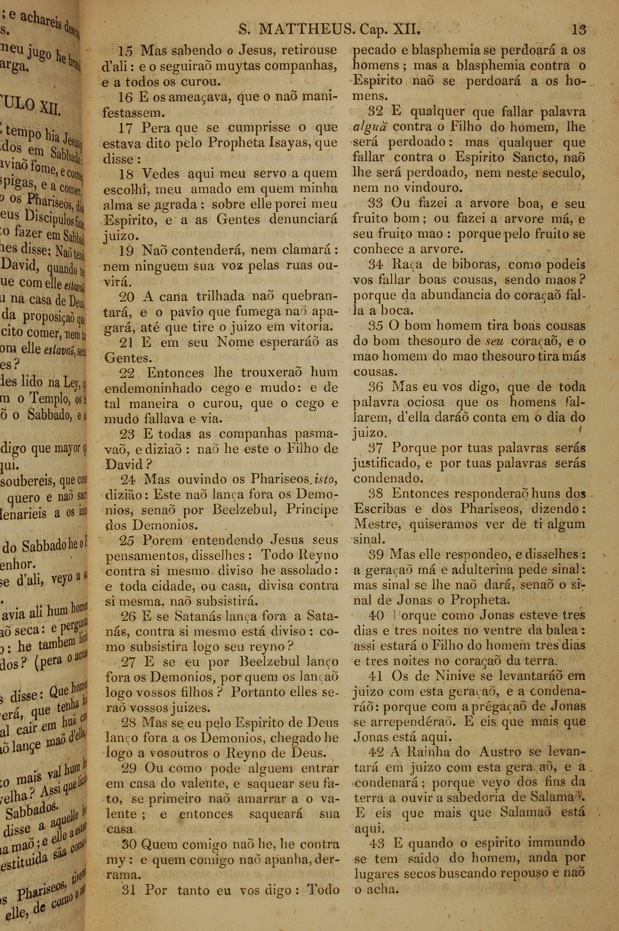 1819年葡萄牙語新約全書 馬太福音 12 章 15 節到 12 章 43 節