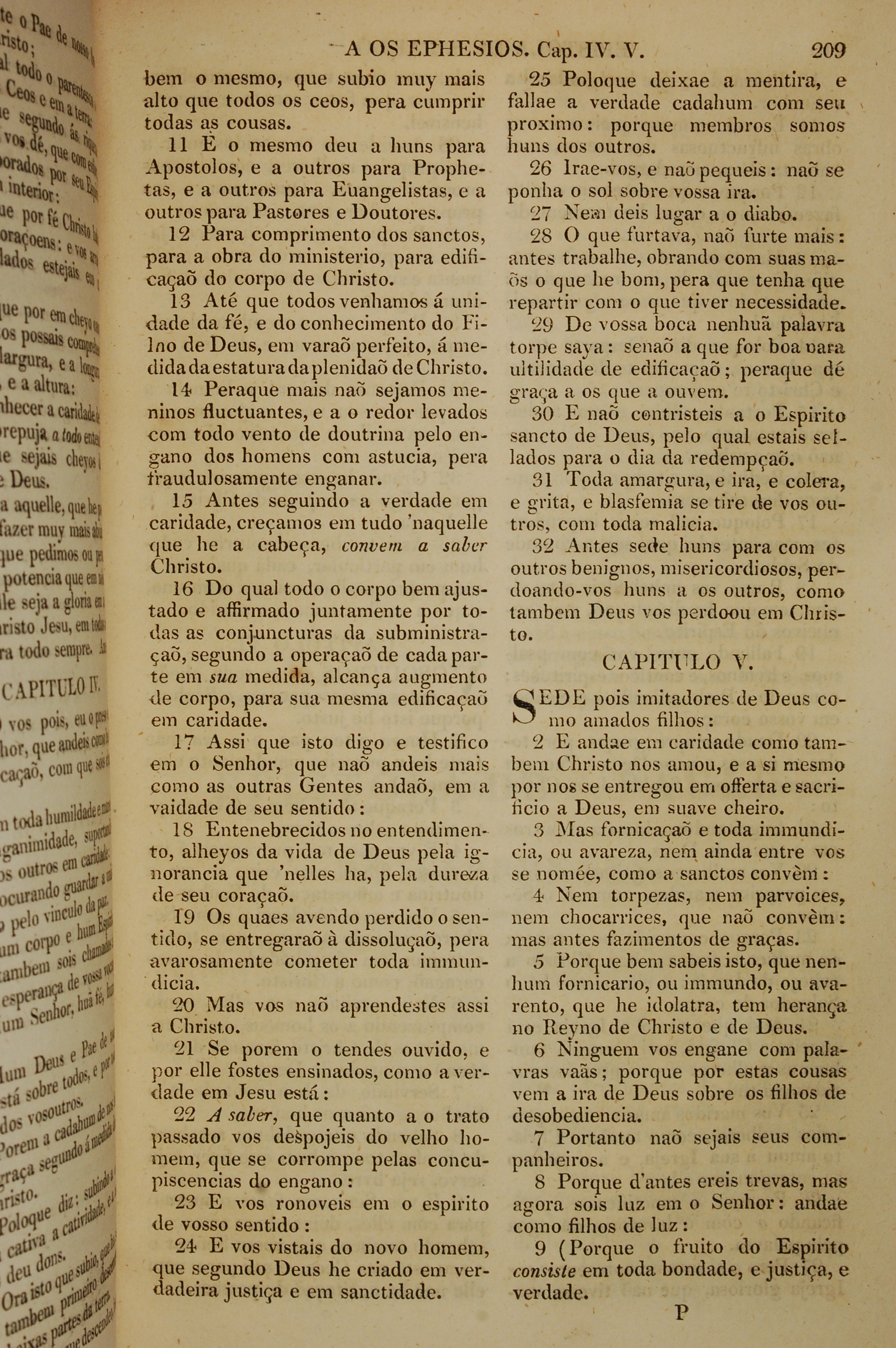 1819年葡萄牙語新約全書 以弗所書 4 章 11 節到 5 章 9 節