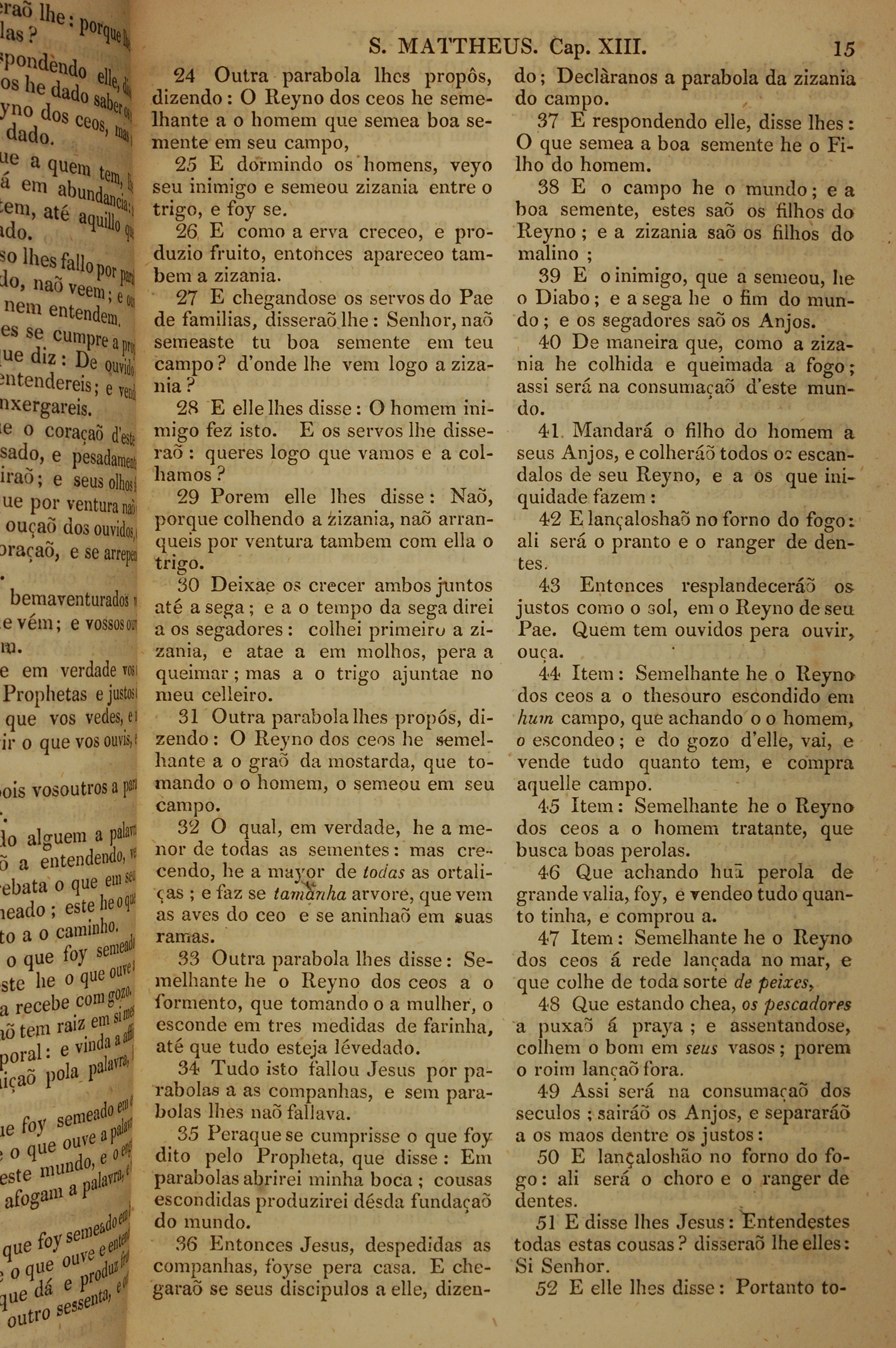 1819年葡萄牙語新約全書 馬太福音 13 章 24 節到 13 章 52 節