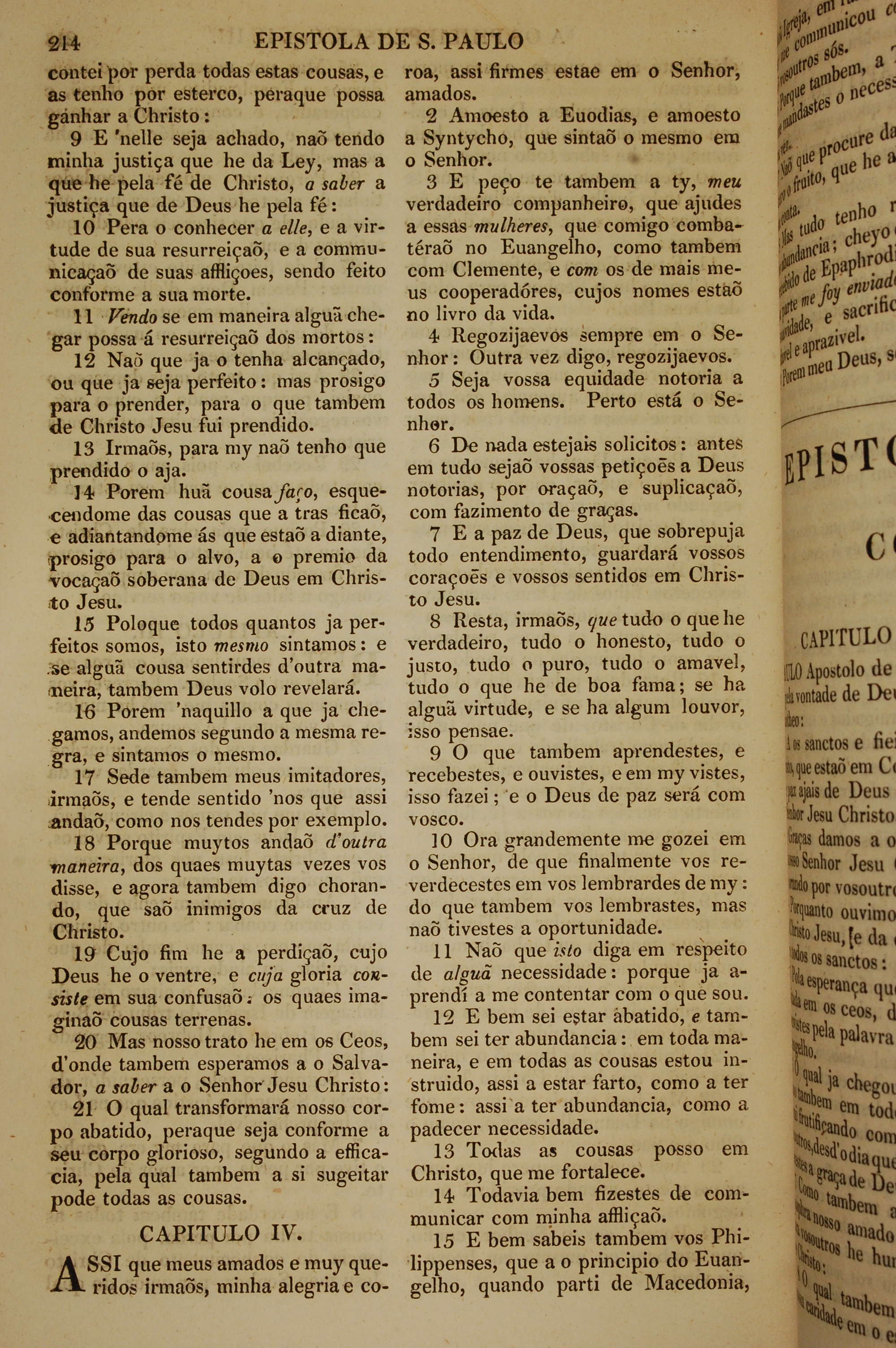 1819年葡萄牙語新約全書 腓立比書 3 章 9 節到 4 章 15 節