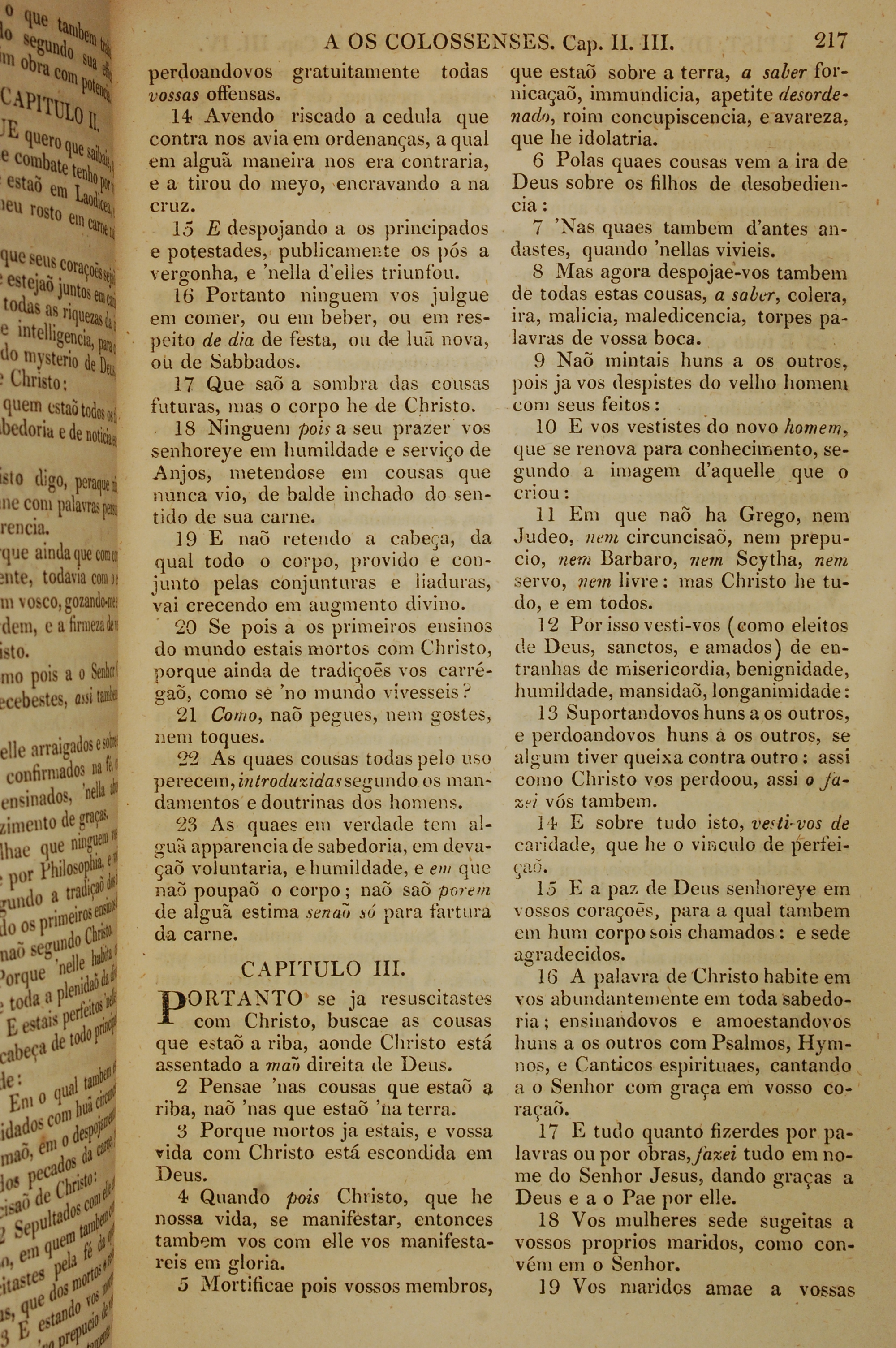 1819年葡萄牙語新約全書 歌羅西書 2 章 14 節到 3 章 19 節