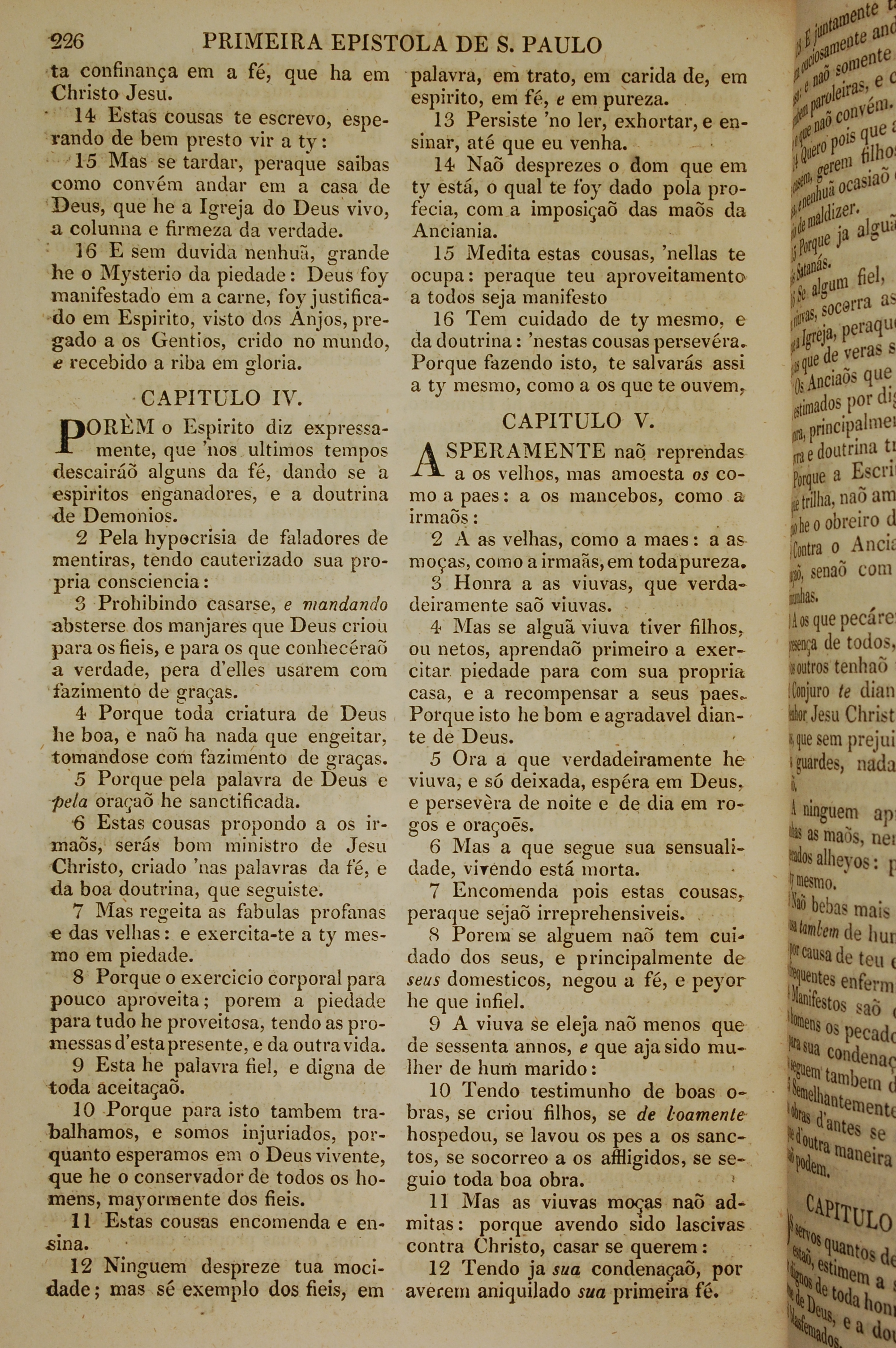 1819年葡萄牙語新約全書 提摩太前書 3 章 14 節到 5 章 12 節