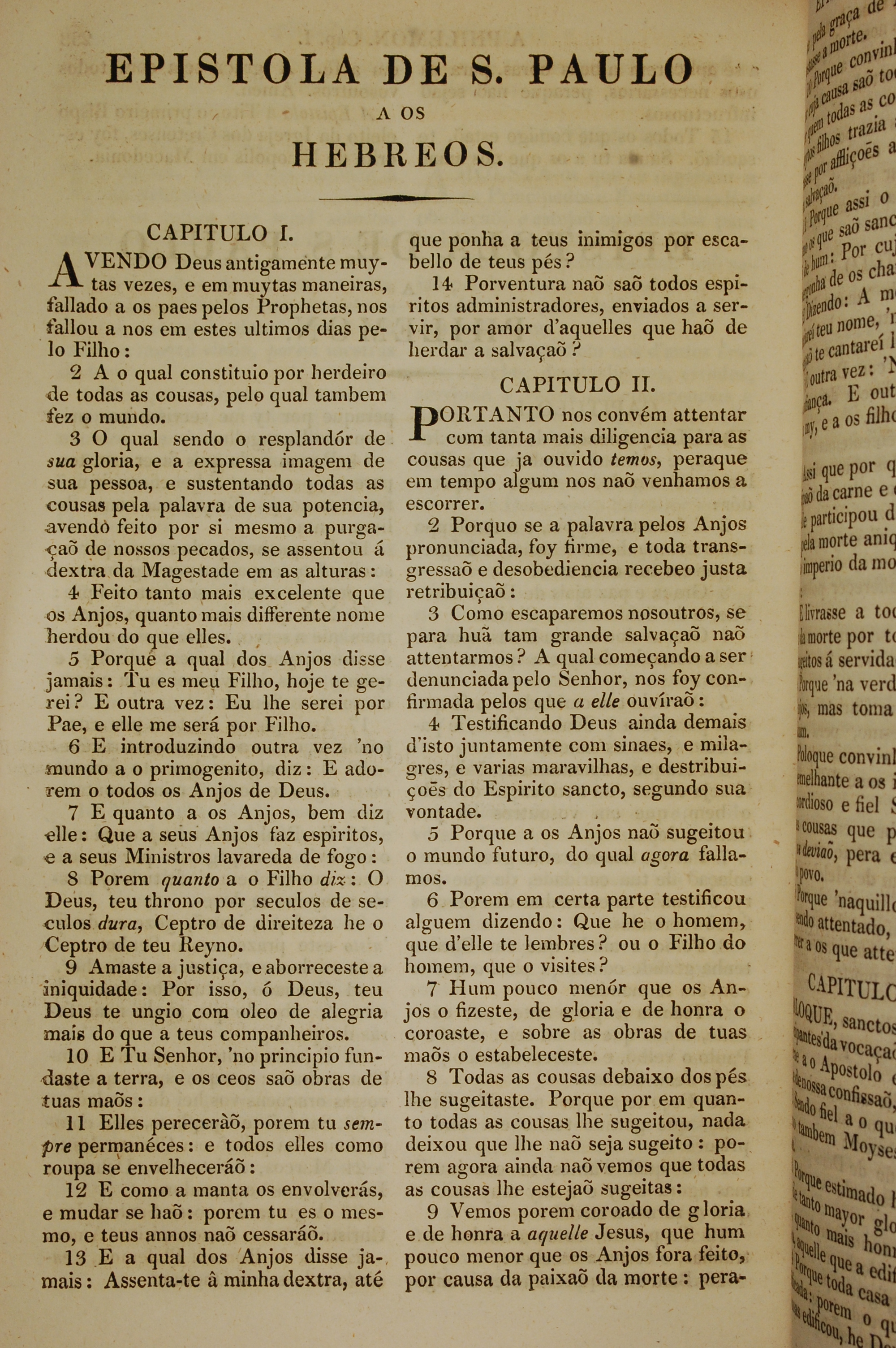 1819年葡萄牙語新約全書 希伯來書 1 章 1 節到 1 章 9 節