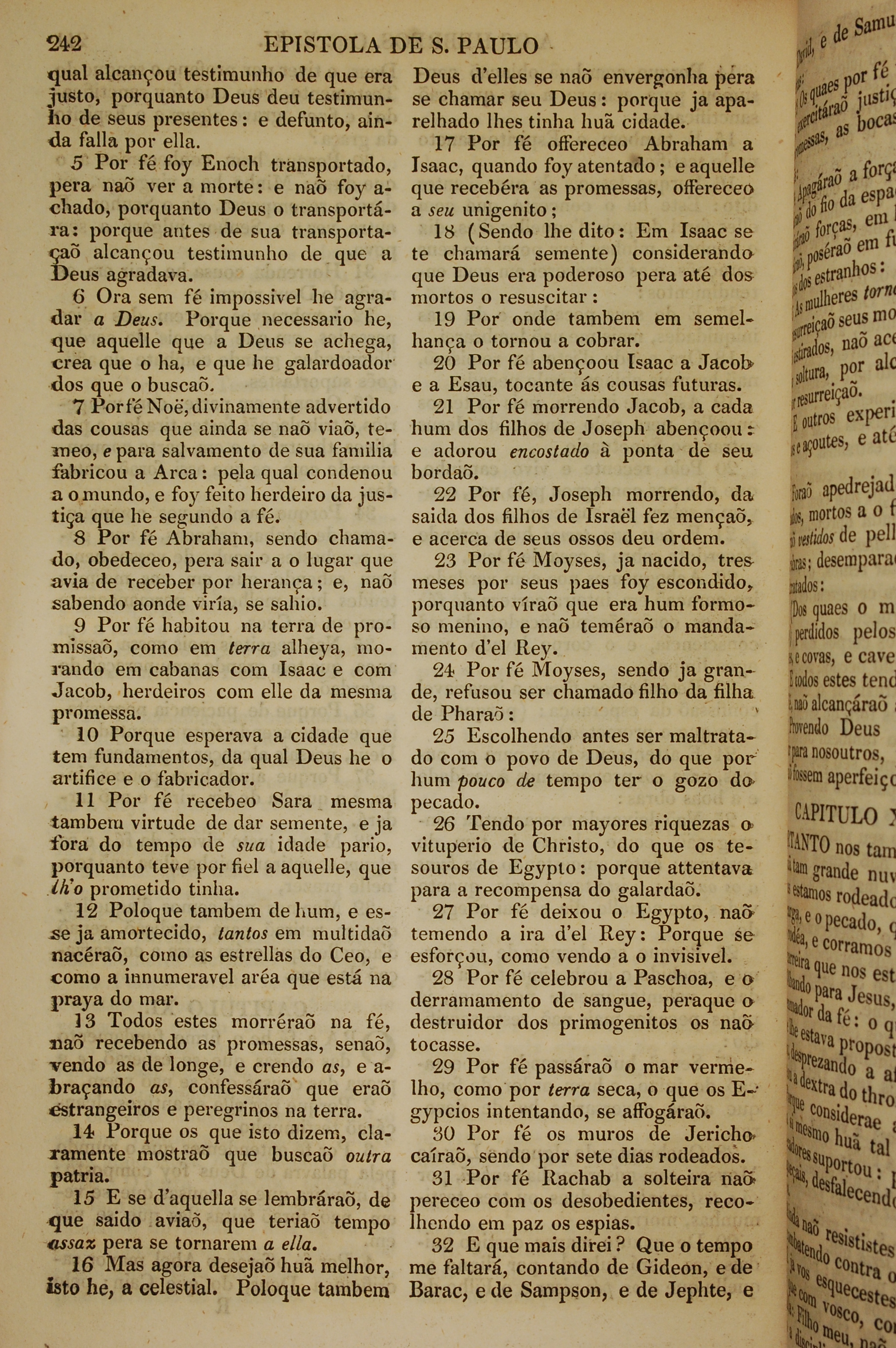 1819年葡萄牙語新約全書 希伯來書 11 章 5 節到 11 章 32 節