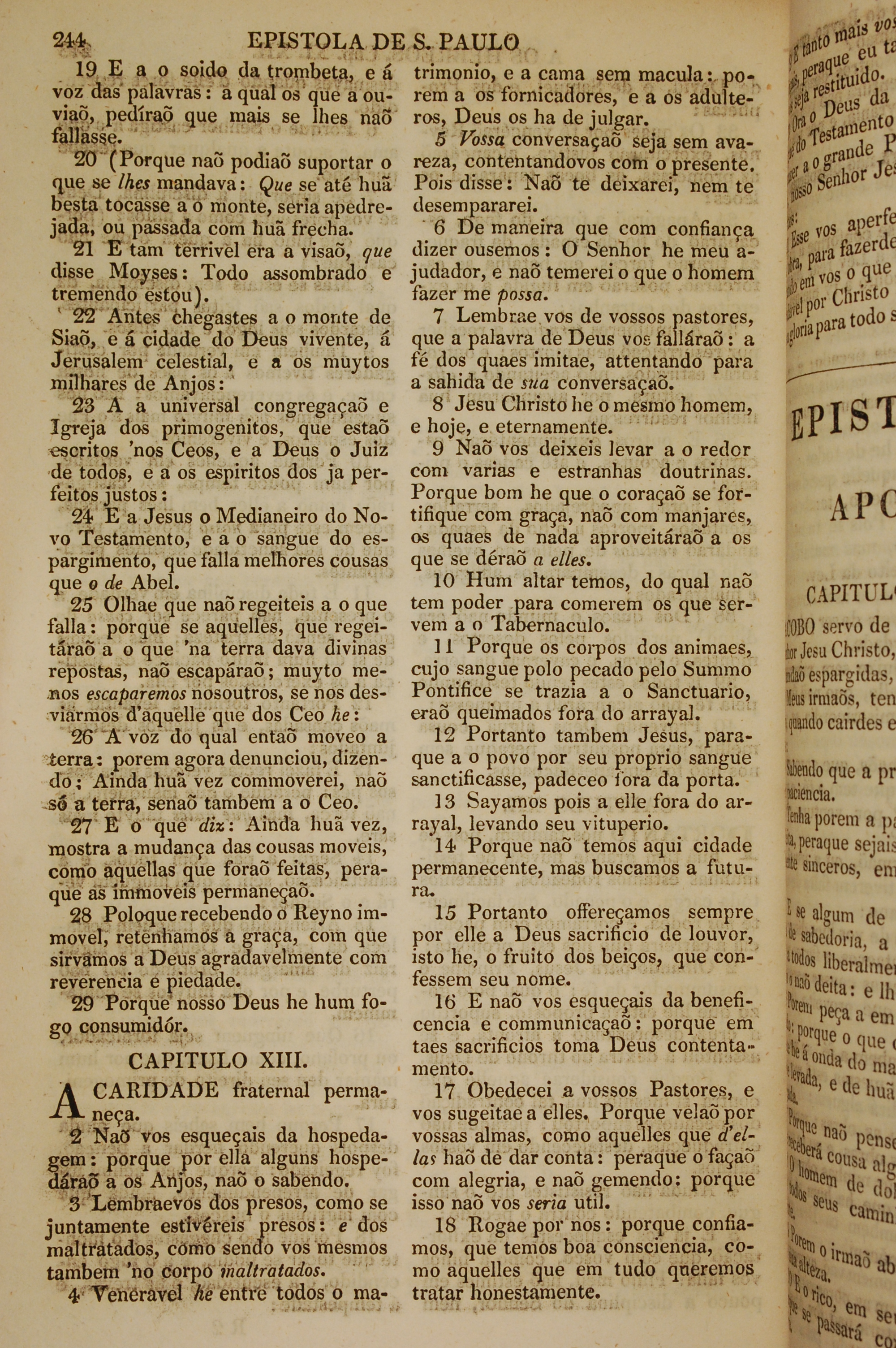 1819年葡萄牙語新約全書 希伯來書 12 章 19 節到 13 章 18 節