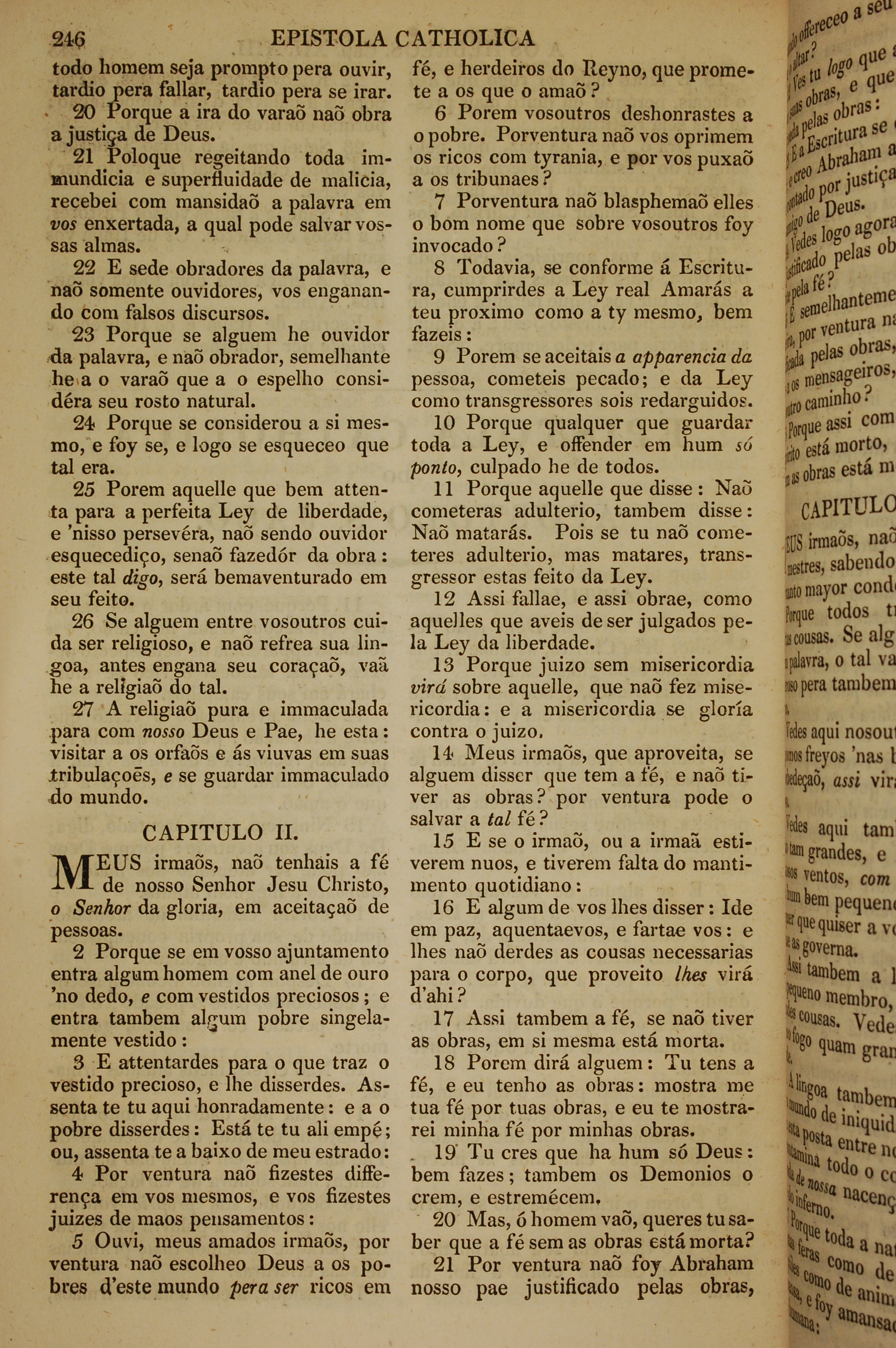 1819年葡萄牙語新約全書 雅各書 1 章 20 節到 2 章 21 節