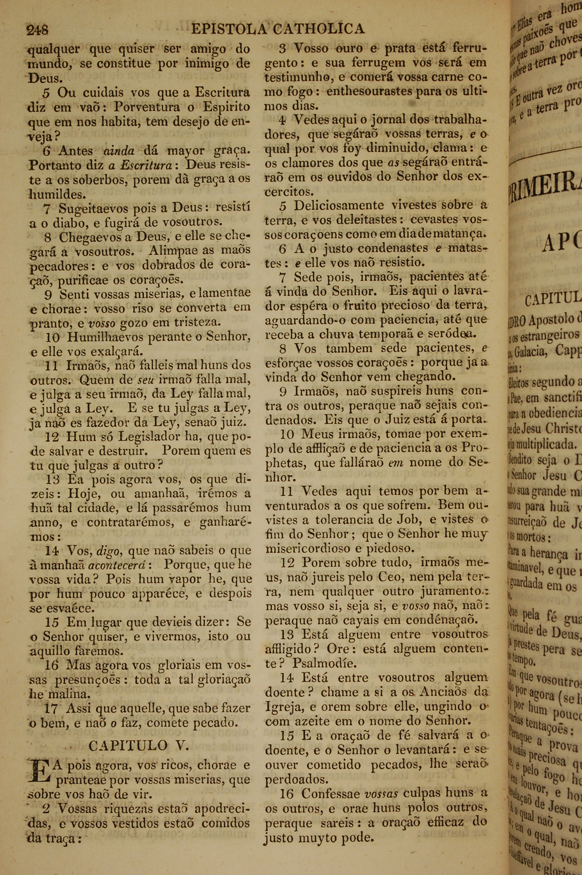1819年葡萄牙語新約全書 雅各書 4 章 5 節到 5 章 16 節