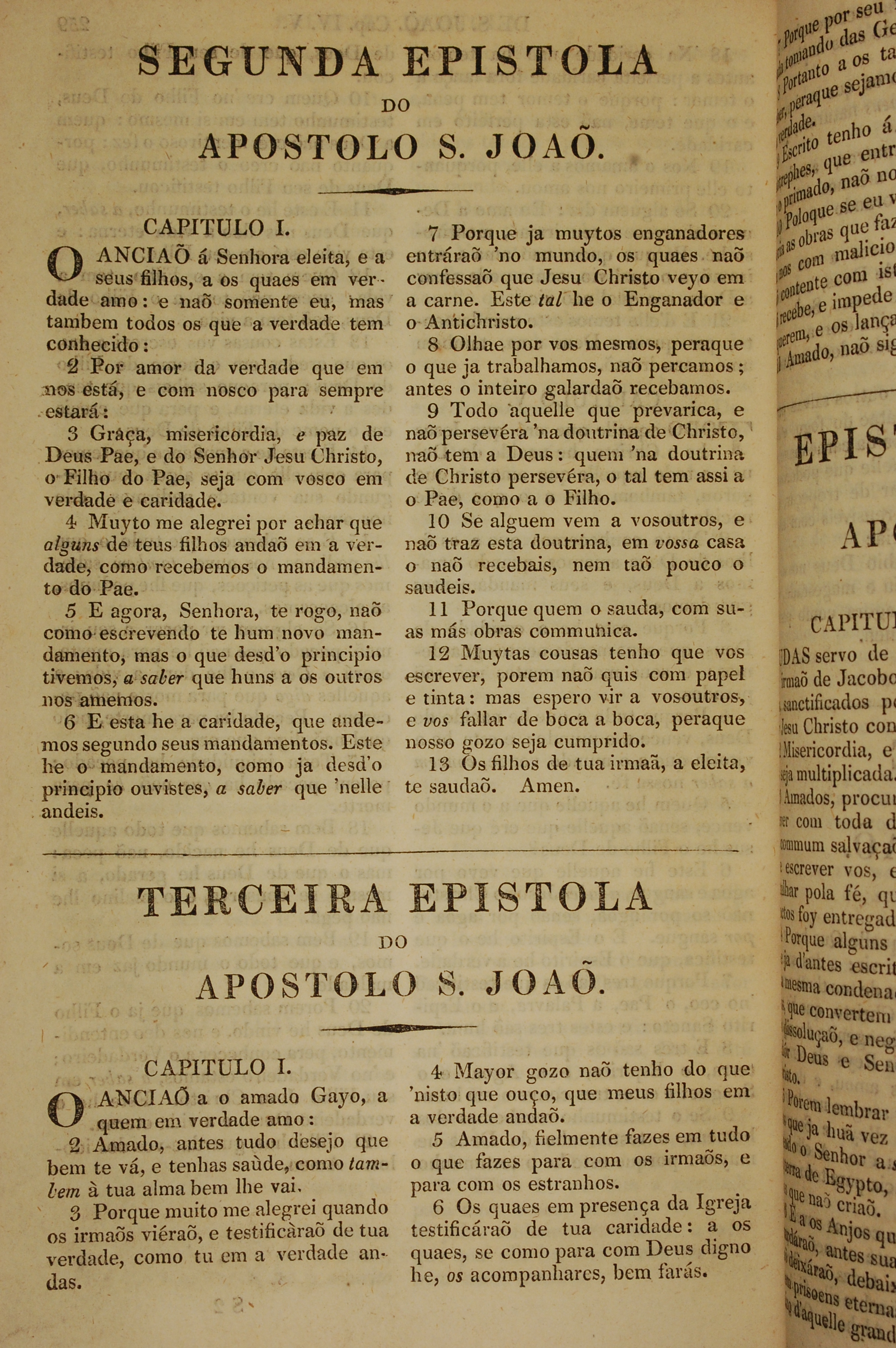 1819年葡萄牙語新約全書 約翰二書 1 章 1 節到 1 章 13 節